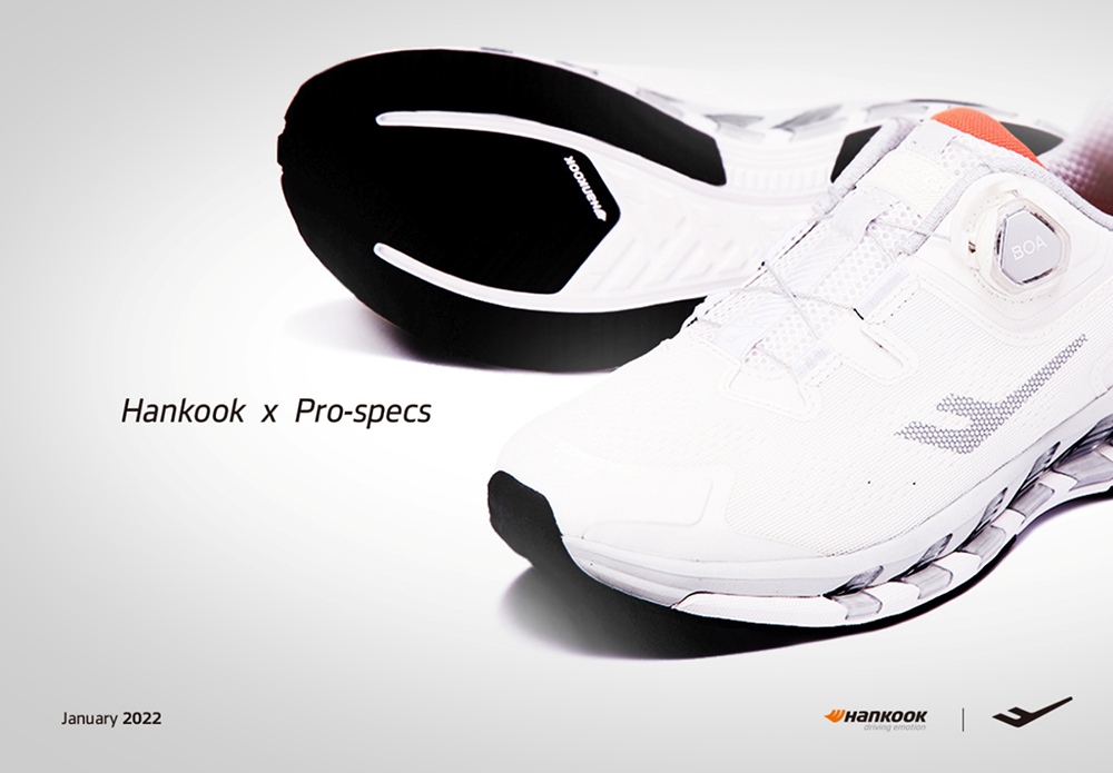Hankook Tire & Technology sta collaborando con il marchio coreano di abbigliamento sportivo Prospecs per realizzare una serie di scarpe da corsa con un grip migliorato in condizioni di bagnato e invernali: per questo motivo, l’azienda sportiva si è affidata ad Hankook, che ha fornito il disegno del battistrada del pneumatico all season Hankook Kinergy 4S2 per le suole delle scarpe da ginnastica.