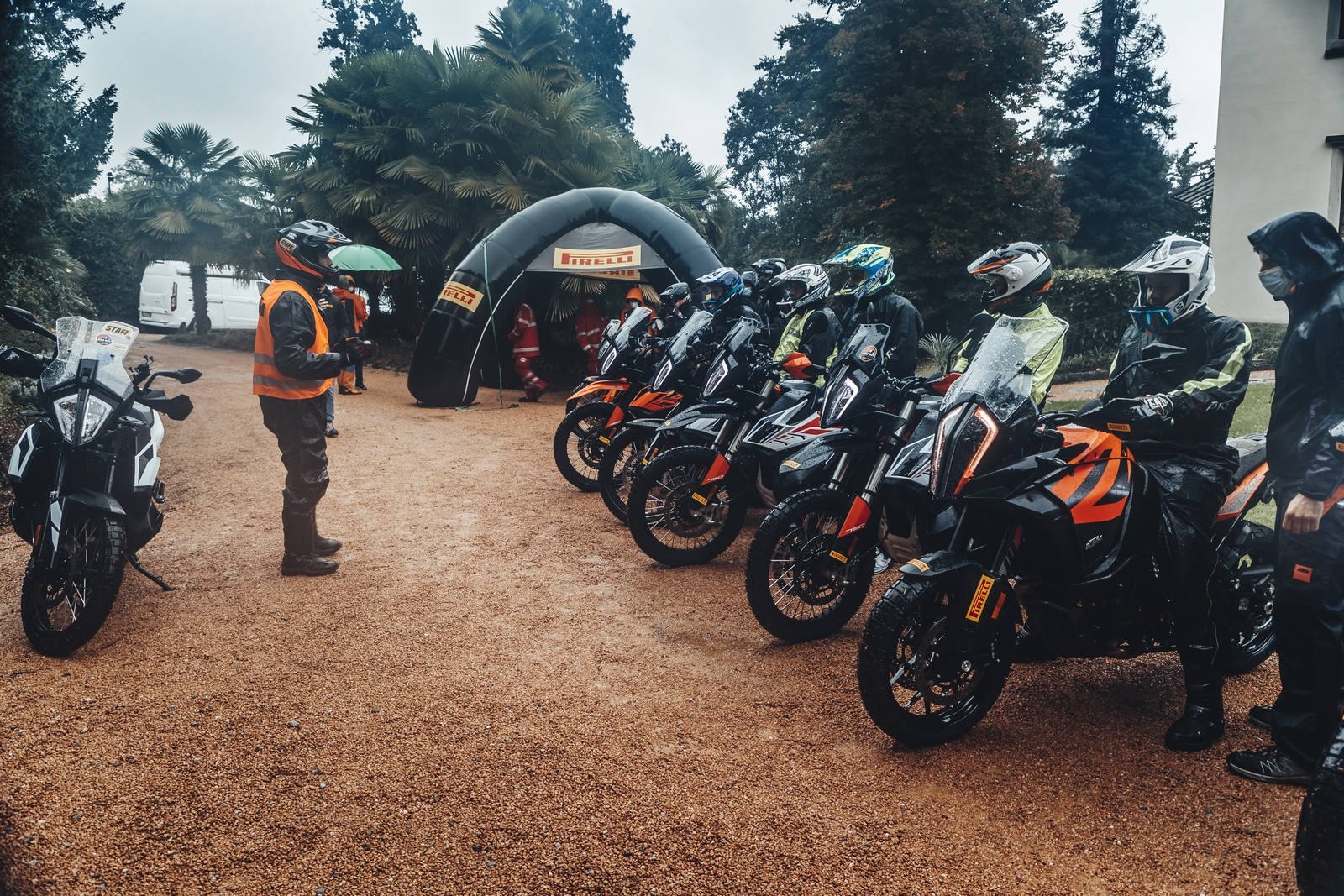 Le sessioni TOUR e PARK prevedevano l’utilizzo della propria motocicletta e si sono svolte la prima su strada e la seconda in fuoristrada sui percorsi offroad ricavati ad hoc all’interno del parco che circonda il Castello Dal Pozzo; la sessione TEST si è svolta a bordo dei modelli KTM Adventure equipaggiati con pneumatici Pirelli Scorpion Rally STR e ha visto i partecipanti affrontare percorsi misti su strada e in fuoristrada.