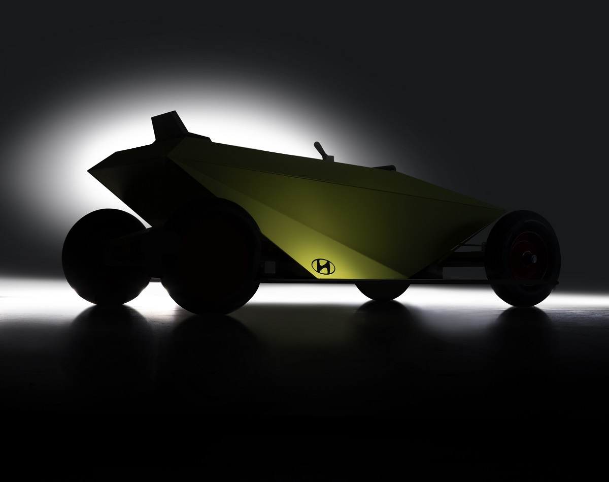 La soapbox car di Hyundai mostra un carattere dinamico, con una silhouette leggermente inclinata a 45 gradi, con le ruote scoperte e un telaio ribassato.