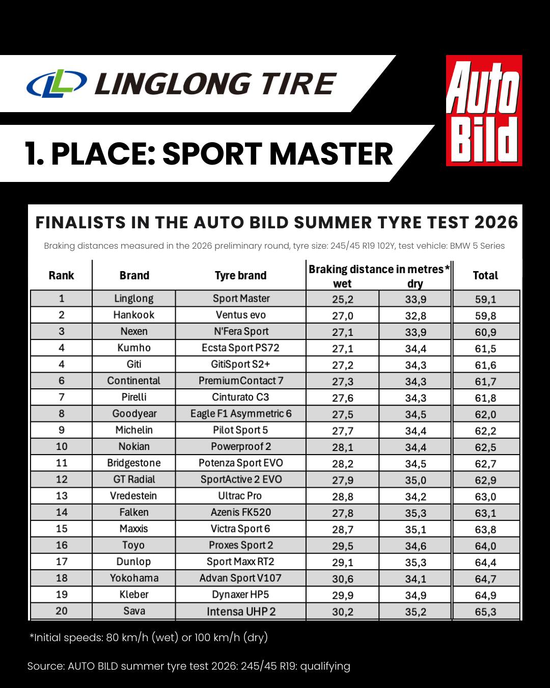 La vera notizia che sta facendo discutere gli esperti del settore è il primo posto assoluto di Linglong nella classifica combinata delle frenate. Il modello Sport Master non solo si è qualificato per la finale, ma lo ha fatto con prestazioni da record che hanno lasciato dietro di sé i “mostri sacri” del segmento premium.