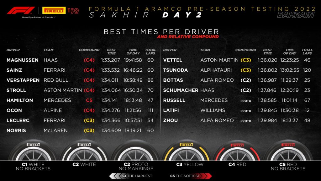 I nuovi 18 pollici Pirelli sono tornati in azione con le monoposto 2022 sul circuito di Sakhir, in Bahrain, per la seconda sessione di test pre-stagionali dopo quella di due settimane fa a Barcellona.