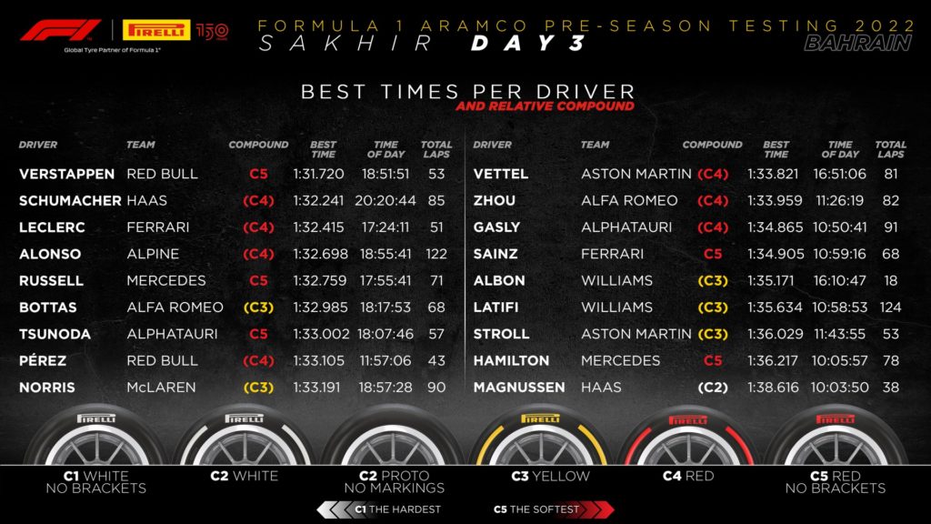 “Il test in Bahrain ci ha permesso di raccogliere ulteriori dati utili sul comportamento dei nuovi pneumatici da 18 pollici su un circuito che per layout, caratteristiche dell’asfalto e temperature è molto diverso rispetto a quello di Barcellona. In realtà potremmo dividere il test in due momenti ben distinti: le prime due giornate e l’ultima. Giovedì e venerdi sono stati due giorni molto caldi, oltre che particolarmente ventosi, e questo li ha resi poco rappresentativi, con alte temperature che hanno esacerbato il degrado offrendo una lettura distorta del reale comportamento dei pneumatici. La terza giornata è stata quella più importante: temperature più miti, ottimizzazione dei set-up e livelli di degrado tornati in linea con le nostre aspettative, hanno consentito ai Team di concentrarsi maggiormente sui pneumatici provando tutte le mescole a disposizione. I gap restano difficili da stimare ma sembrano profilarsi più alti di quel che ci attendevamo, con distacchi simili tra le singole mescole”.