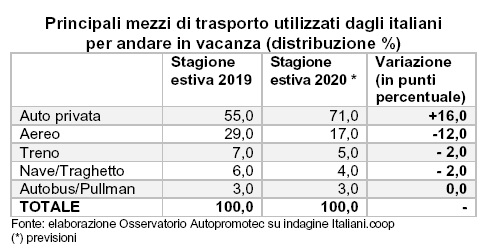 Ai tempi del Coronavirus l’auto si conferma largamente il mezzo più utilizzato dagli italiani per raggiungere le mete preferite per le vacanze. Ben il 71% degli italiani prevede infatti di spostarsi in auto durante la stagione estiva 2020. Si tratta di un dato in crescita di 16 punti percentuali rispetto al 2019, quando l’automobile era il mezzo preferito per gli spostamenti vacanzieri dal 55% degli italiani.