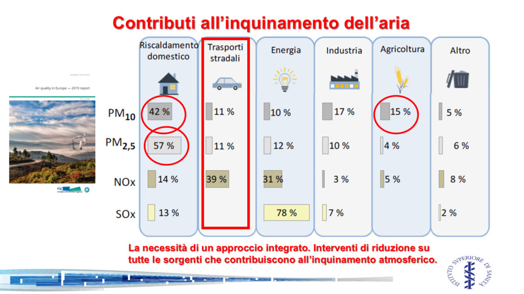 Proprio quest’ultimo ha esposto una sintetica ma chiara relazione sull’inquinamento atmosferico, sulle sostanze inquinanti e le rispettive sorgenti. Da uno schema riassuntivo sono emerse le principali sorgenti degli ormai famigerati PM 10: nei grandi centri urbani italiani, il riscaldamento domestico incide per il 42%, l’industria per il 17% e l’agricoltura per il 15%; i trasporti stradali emettono l’11% del PM 10 presente nell’aria. Da qui la necessità di un approccio integrato (non solo penalizzando e demonizzando i veicoli) e di interventi su tutte le sorgenti che contribuiscono all’inquinamento atmosferico.
