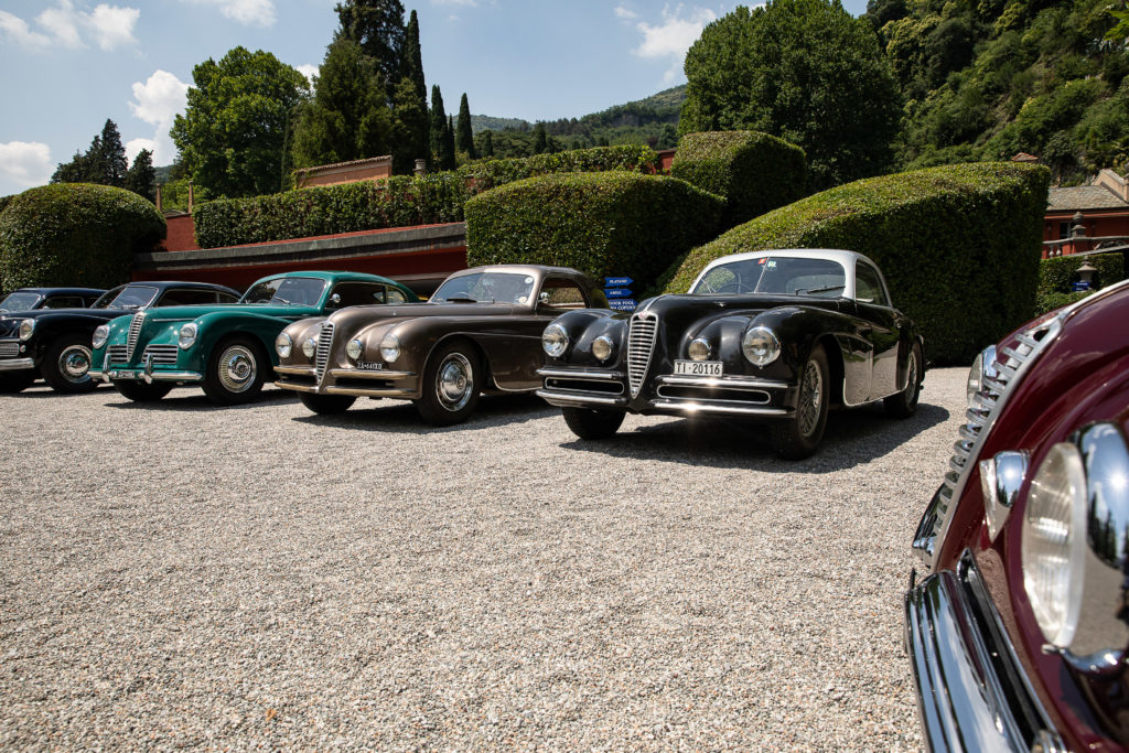 I protagonisti di questa edizione sono stati sei esemplari di Alfa Romeo 6C 2500 SS Coupé Villa d’Este, di cui tre bordeaux, uno blu, uno nero, oltre all’inconfondibile grigio metallizzato di proprietà dell’Hotel Villa d’Este.