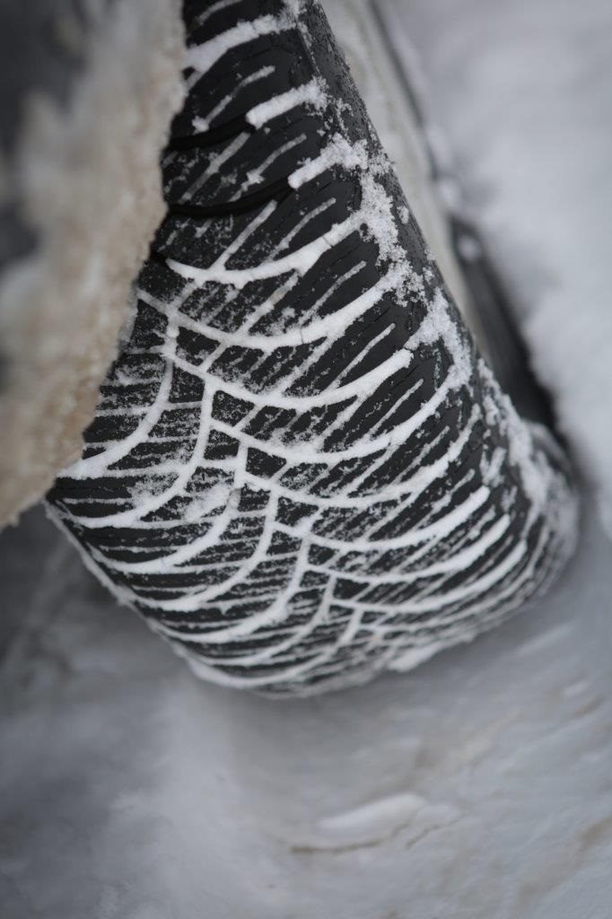 Nella piana di Fiames, vicino a Cortina, ho fatto alcuni test per vedere il comportamento delle gomme nuove. Su 20 cm di neve fresca, con la macchina a bassi regimi, non ho avuto alcun problema, addirittura non ho avvertito nemmeno il tipico effetto di galleggiamento. L’andatura è stata molto lineare nella prosecuzione, senza sbalzi o ondulamenti verticali.