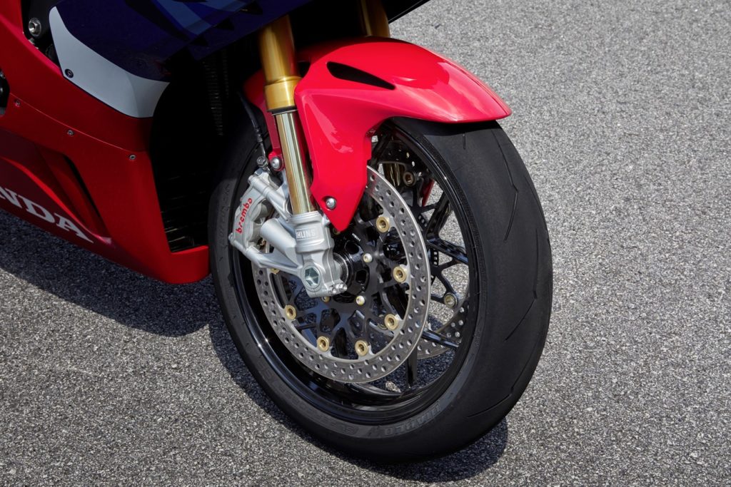 La nuova CBR1000RR-R Fireblade sarà disponibile anche in versione SP, che si differenzia dal modello standard per le sospensioni Öhlins elettroniche (al posto delle Showa pluriregolabili), e l’impianto frenante anteriore Brembo Stylema (al posto di Nissin). Entrambe le versioni vantano la stessa pinza freno posteriore Brembo già adottata per la RC213V-S.
