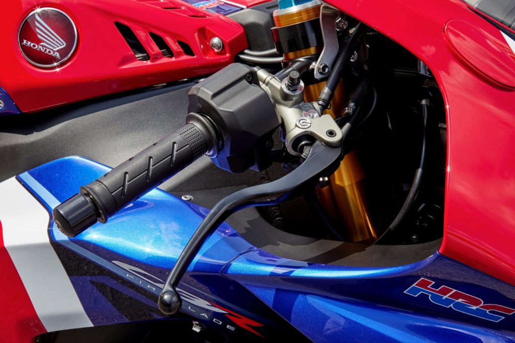 L’aerodinamica gioca un ruolo importante per le prestazioni della nuova Fireblade. È stata studiata e messa a punto in stretta collaborazione con i progettisti HRC che hanno applicato tutte le soluzioni derivanti dall’esperienza con la RC213V. In più, l’introduzione della nuova piattaforma inerziale (IMU) Bosch a 6 assi, che rimpiazza la precedente a 5 assi, conferisce alla nuova CBR1000RR-R una precisione di calcolo del rollio, beccheggio, imbardata, e un livello di controllo senza precedenti. Infine, in collaborazione con Akrapovic, è stato realizzato il terminale di scarico in titanio con valvola parzializzatrice.