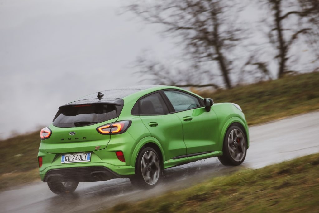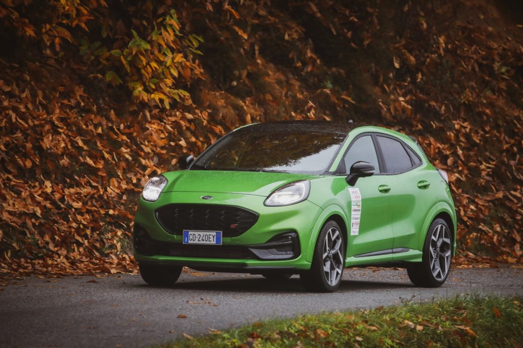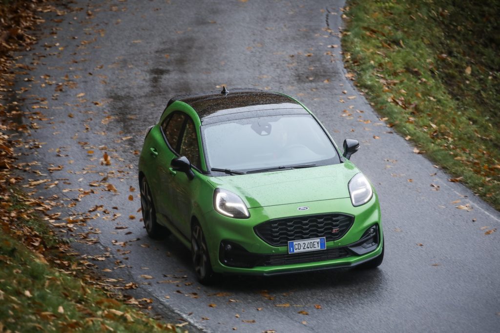 Il piccolo miracolo arriva dal consolidato 1.5 turbo Ford a tre cilindri in grado di stupire ed ottenere prestazioni impensabili. Parliamo di 200 CV a fronte di un peso a secco di 1.358 kg; un rapporto peso/potenza a dir poco favorevole, con ben 320 Nm di coppia massima. La Suv compatta è capace di toccare i 220 km/h e di passare da 0 a 100 km/h in 6,7 secondi, mentre i dati preliminari dei consumi indicano una media Wltp di 6,9 l/100 km e 155 g/km di CO2. Anche l’estetica vuole la sua parte, è vero, ma nulla è stato regalato alla scena, ogni dettaglio ha un preciso scopo funzionale. Niente fronzoli, per capirci. È previsto un nuovo splitter frontale che aumenta dell’80% la downforce sull’anteriore dove campeggiano griglie più grandi per un migliore raffreddamento. Aggressiva anche la tinta nello speciale Mean Green.