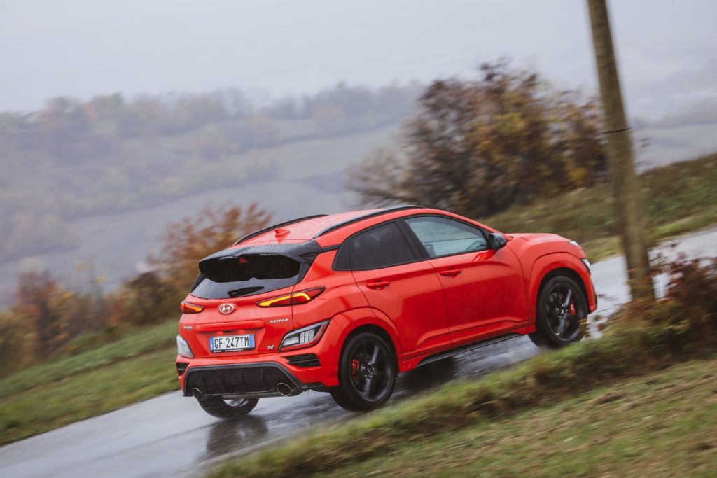 Tutto questo per solo 280 cv? Chi ha dimestichezza con il mondo del motorsport sa bene che il valore di potenza è del tutto relativo; quello che davvero conta è la rigidità della struttura e del telaio, il rapporto della potenza con il peso, la distribuzione dei pesi, l’erogazione della potenza espressa in Nm, la capacità di frenata, il mantenimento della stabilità, la reattività delle sospensioni. In buona sostanza quello che è stato possibile apprezzare alla guida di Kona N. Un comportamento neutro nelle diverse situazioni che ha impressionato oltre le più rosee aspettative.