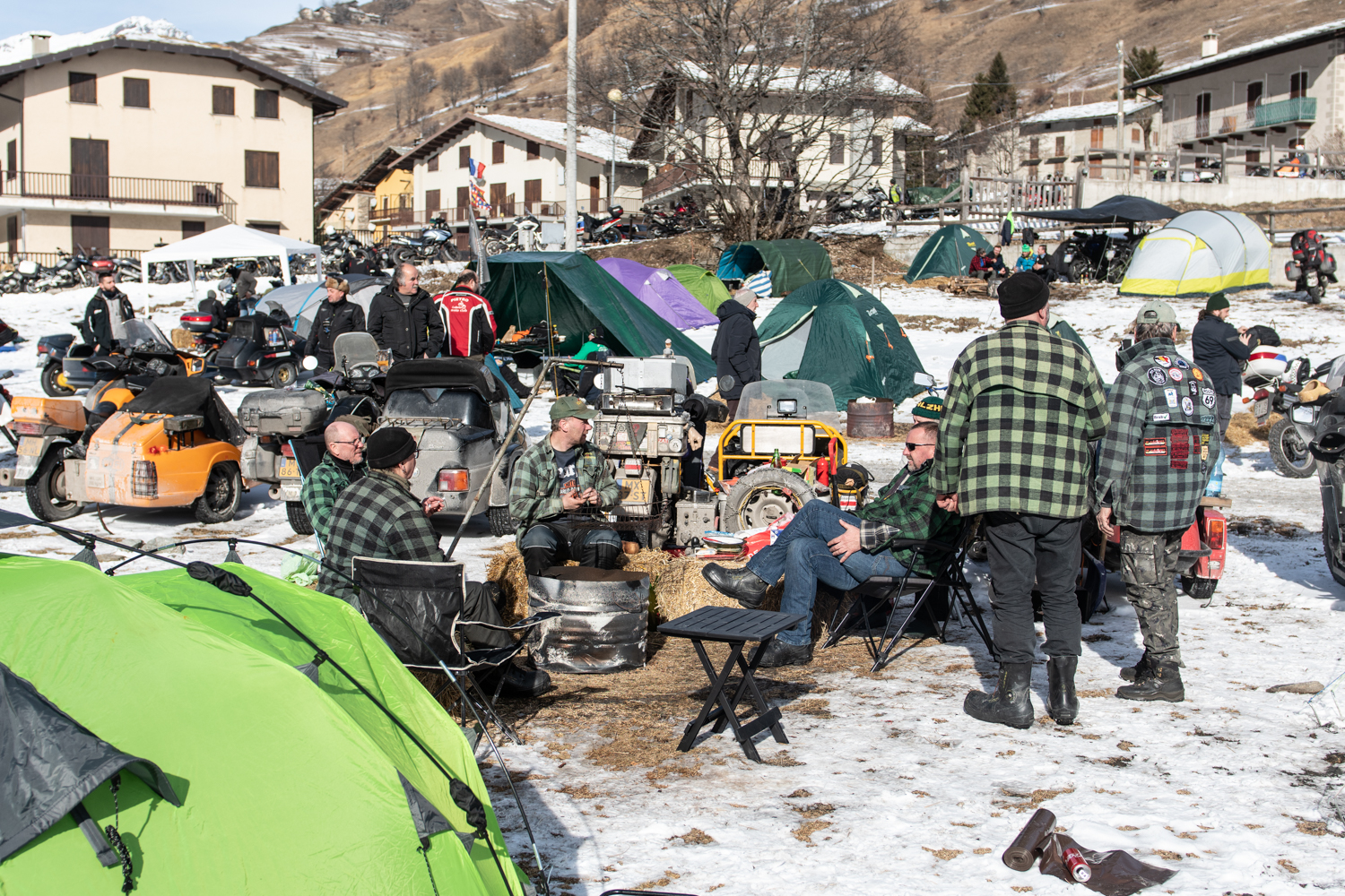 AgnelloTreffen 2019: un’orda di pacifici invasori provenienti da tutto il continente ha preso possesso di Pontechianale trasformandola in una piccola e bianca capitale del motociclismo secondo quella che è, ormai, diventata una tradizione invernale. Ma che emozione ogni volta vederli tutti assieme accampati con le soluzioni più originali!