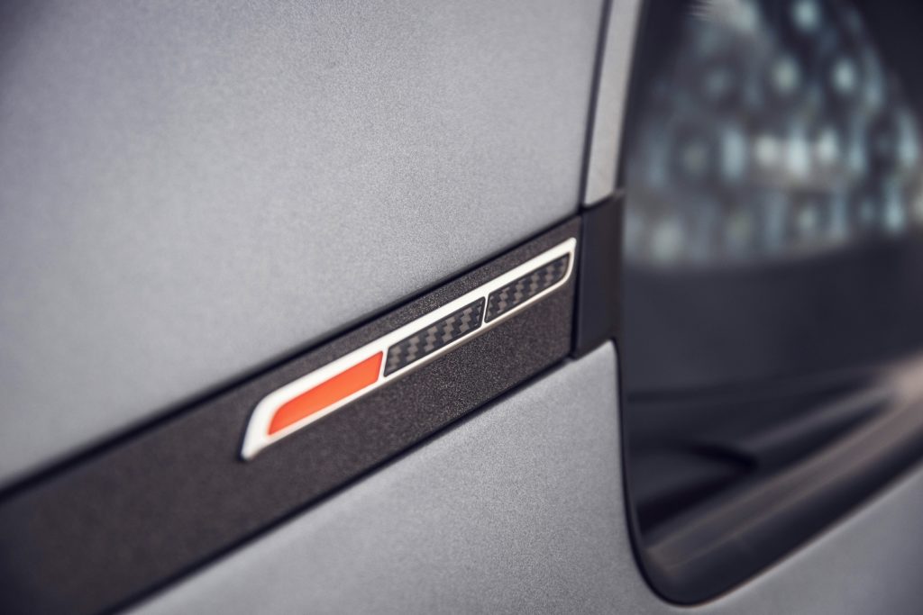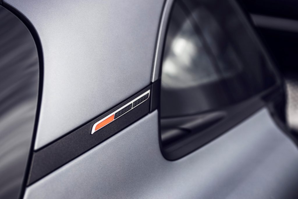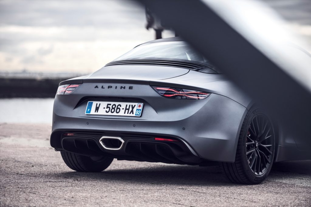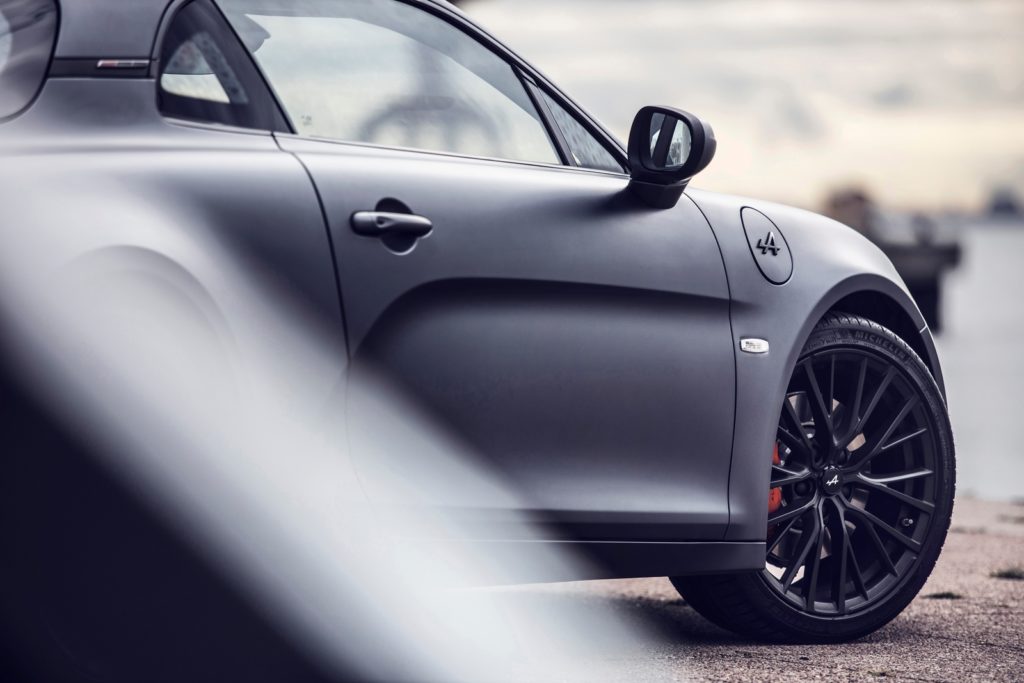 Con i suoi tratti stilistici, l’A110S si distingue nettamente dal resto della gamma A110. La sportività del veicolo è accentuata da nuovi particolari esterni come i badge bandiera carbonio e arancioni sui montanti posteriori, il monogramma Alpine cromato nero, le pinze freno arancioni e i cerchi “GT Race” specifici. L’altezza da terra ribassata e la tinta di carrozzeria Grigio Tuono mat (in opzione, un’esclusiva dell’A110S) sottolineano ulteriormente il suo carattere sportivo.