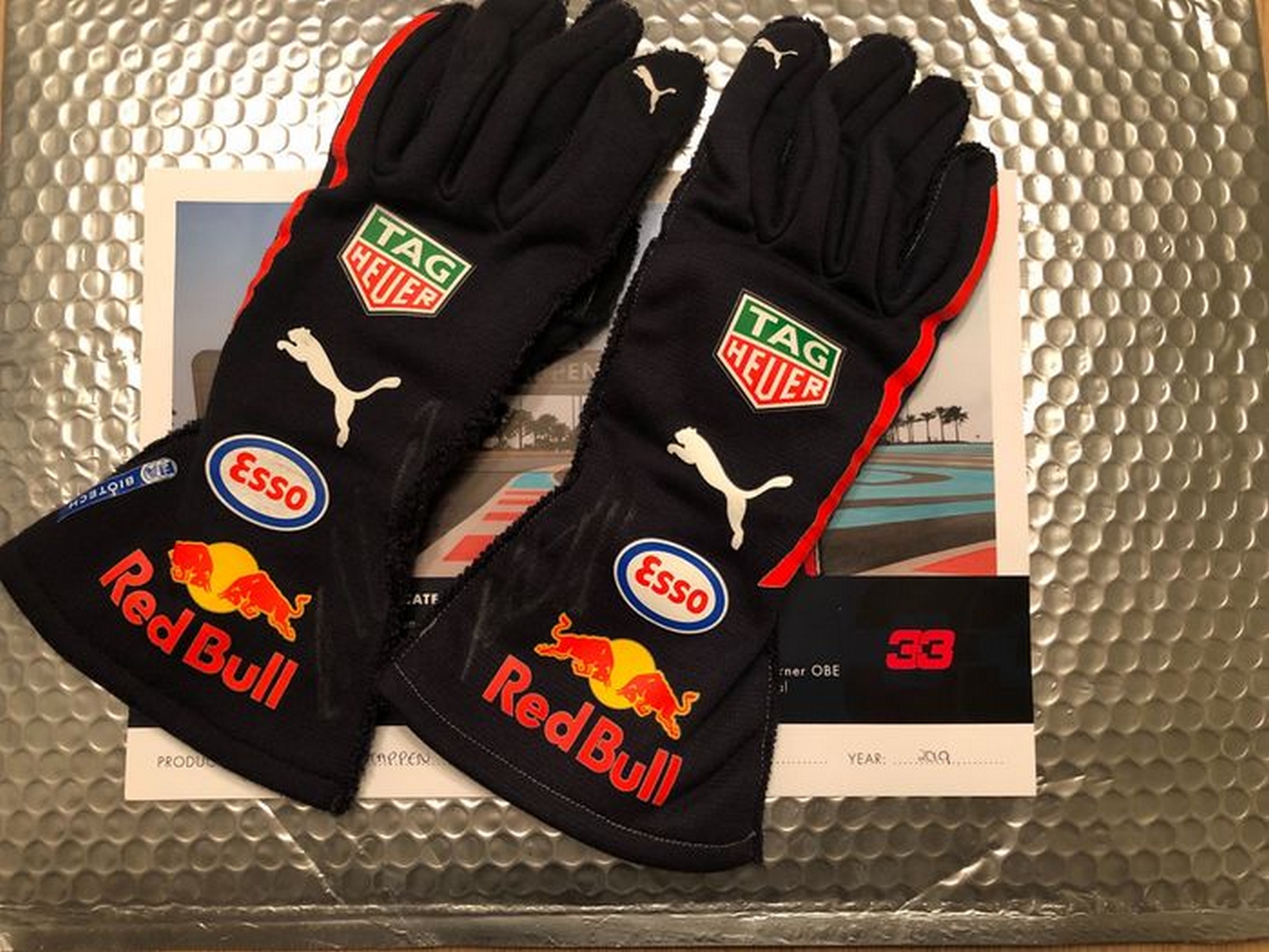 Indossati da Max Verstappen nel 2018, questi guanti da Formula 1 sono autenticati dal team di F1 Red Bull Racing.