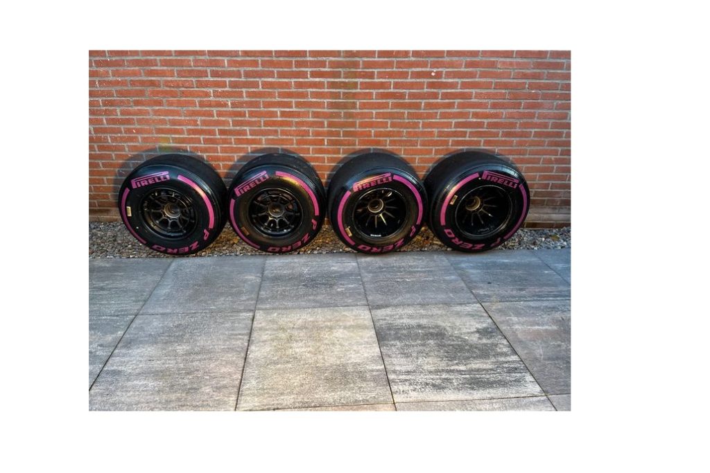 Set di 4 ruote Pirelli di Formula 1 utilizzato durante la stagione 2016. Il set consiste in 2 pneumatici anteriori e 2 posteriori ultra morbidi. I cerchi hanno un raffreddamento nel cerchio interno, visibile solo sui cerchi di Formula 1.