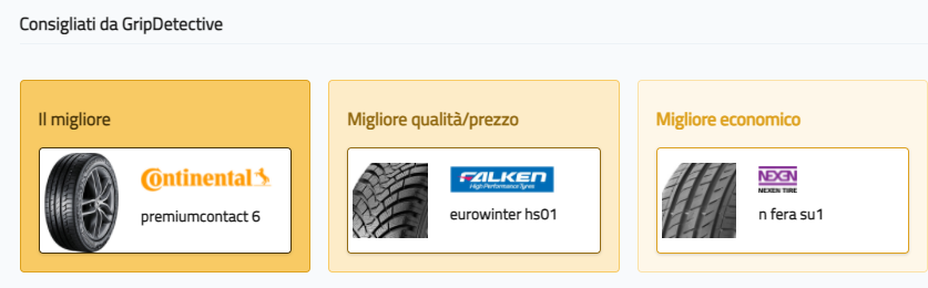 Non solo… quando avrai selezionato la misura che ti interessa, ti diamo il nostro consiglio: quelle che no riteniamo le migliori gomme sul mercato, sia che tu cerchi un modello premium, sia che tu voglia le migliori economiche, sia che tu preferisca stare in mezzo e comprare il modello con il miglior rapporto qualità/prezzo!