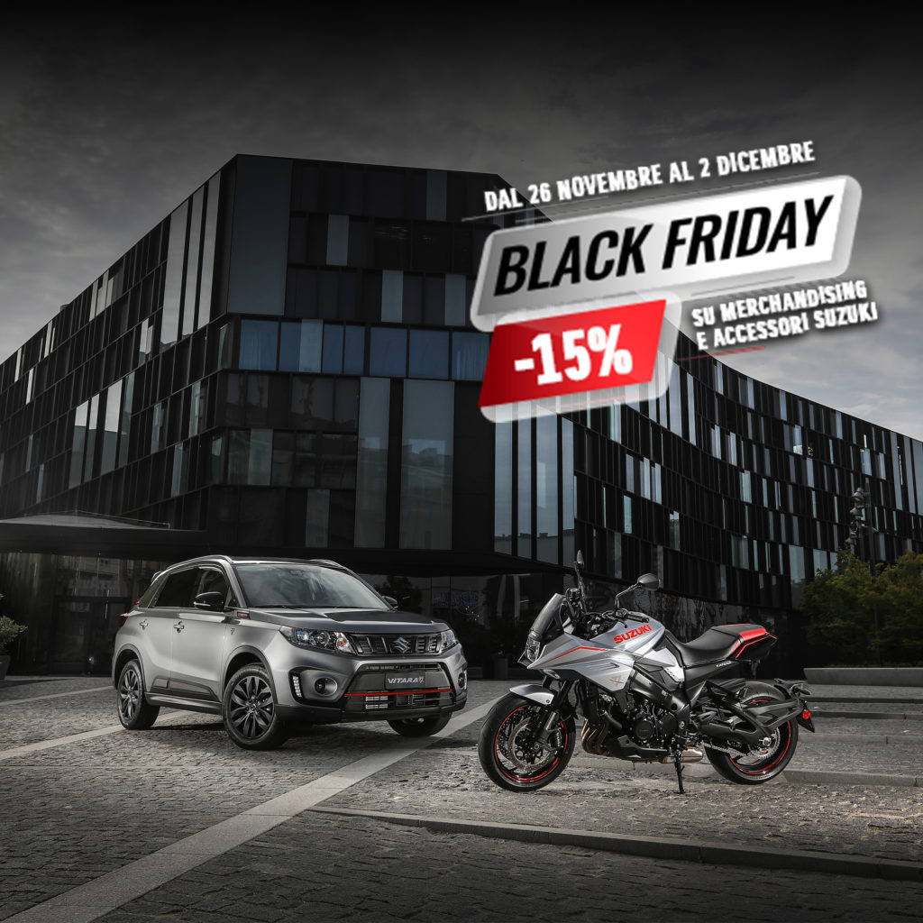 Per i fan del marchio Suzuki si avvicina il momento per regalarsi o per regalare i magnifici prodotti dello shop online della Casa di Hamamatsu. Suzuki ha infatti deciso di aderire al Black Friday, l’attesa giornata di offerte che apre il periodo dello shopping natalizio. A partire da martedì 26 novembre e fino a lunedì 2 dicembre chiunque potrà approfittare di uno sconto irripetibile del 15% su tutti gli articoli presenti sulla piattaforma di e-commerce shop.suzuki.it. Beneficiare dell’iniziativa sarà molto facile: basterà inserire il codice promozionale BLACKSUZUKI al momento del pagamento e l’importo scenderà automaticamente.
