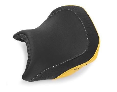 La Sella per conducente AKTIVKOMFORT (Art. n. 42720-409) realizzata da Wunderlich per l’EDITION 40 years GS è di colore nero/giallo e risulta perfettamente integrata al design della moto. Vanta una caratteristica bordatura ergonomica 3D che consente al conducente di “integrarsi perfettamente alla moto”. Forma e inclinazione della sella (con struttura progressiva a due strati) promuovono una postura della schiena comoda e naturale, garantendo una guida rilassata e sicura.