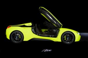 La BMW i8 Roadster LimeLight Edition è stata presentata nella cornice dell’Alcantara Concept Store di Milano: un esemplare unico dal design futuristico, nel colore esclusivo e interni in Alcantara con richiami al medesimo colore.
