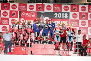 I risultati sono arrivati: F.C.C. TSR Honda France #5 ha vinto il Campionato Mondiale Endurance FIM 2017- 2018 (EWC) con i pneumatici da corsa Bridgestone Battlax appositamente sviluppati. In qualità di partner e fornitore esclusivo del team, Bridgestone si è detta particolarmente orgogliosa di aver contribuito al raggiungimento di questo incredibile traguardo.
