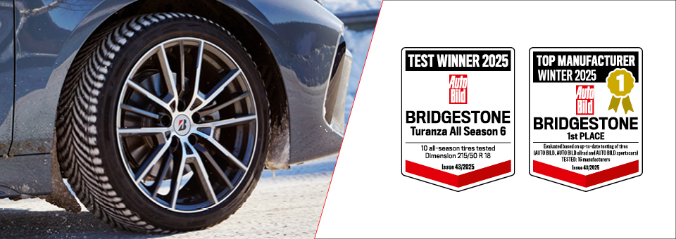Il Bridgestone Turanza All Season 6 si è anche aggiudicato il primo posto nel test sui pneumatici SUV All Season 2025 di Auto Bild. Il pneumatico premium touring all season di Bridgestone è stato dichiarato vincitore a pari merito del test, ottenendo un punteggio complessivo di 1,2, con la valutazione finale “Esemplare”. Il Bridgestone Turanza All Season 6, testato su una Volkswagen T-ROC R nella misura 215/50R18, è stato uno dei 10 pneumatici analizzati dalla prestigiosa rivista tedesca. Auto Bild ha definito il pneumatico Turanza All Season 6 “un pneumatico versatile e robusto con prestazioni molto equilibrate in tutti i test effettuati”.