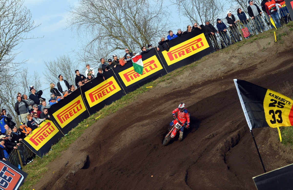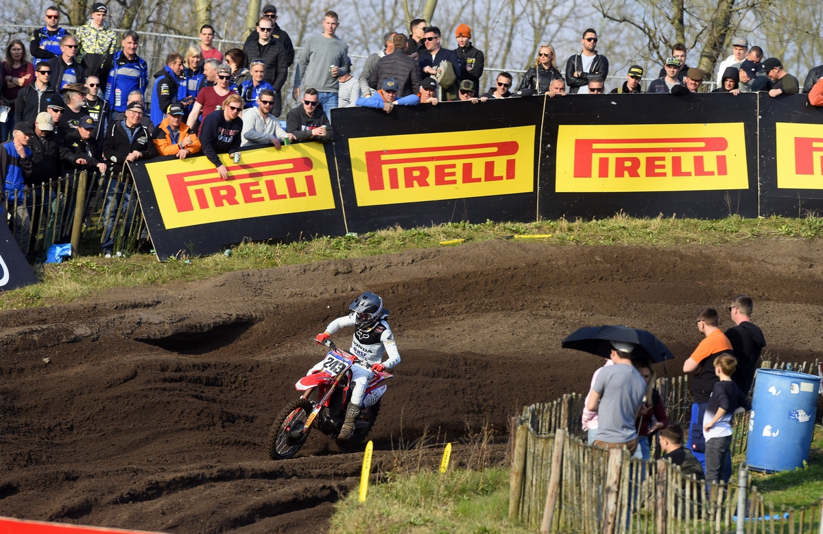 Sull’insidioso fondo medio-morbido della pista olandese i piloti equipaggiati da Pirelli hanno potuto contare sulle ottime doti di guidabilità e direzionalità degli Scorpion MX32 Mid Soft anteriori, nella misura 80/100-21, e degli Scorpion MX Soft posteriori, nella misura 110/90-19. Questi pneumatici hanno permesso ai piloti di interpretare al meglio le impegnative caratteristiche del circuito che, fin dai primi turni di prove, si è scavato particolarmente.