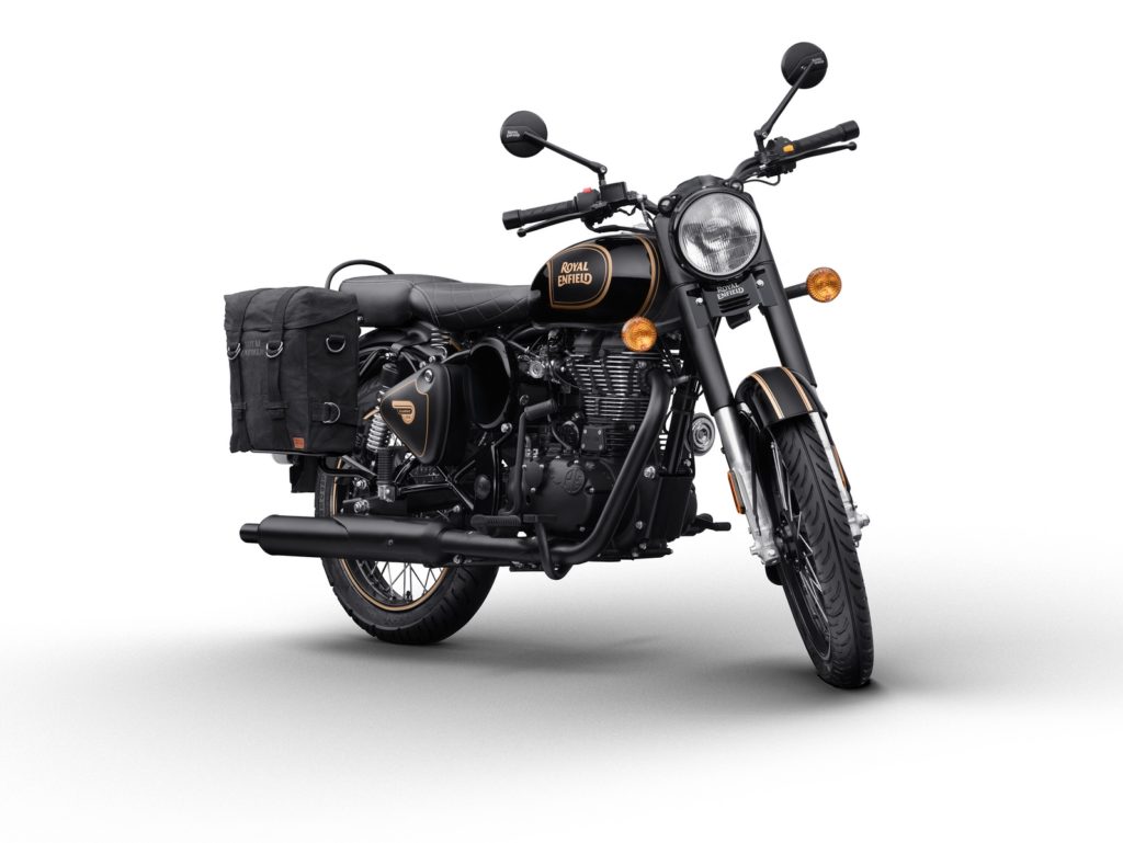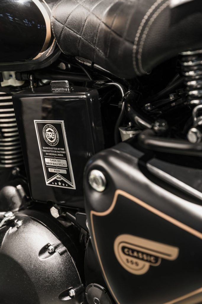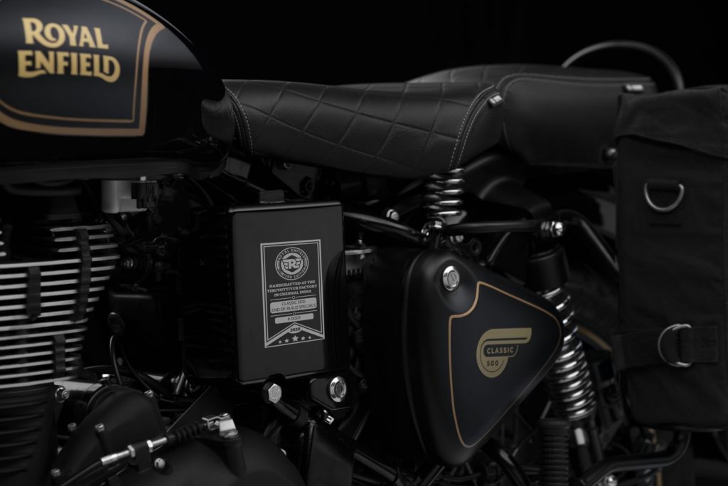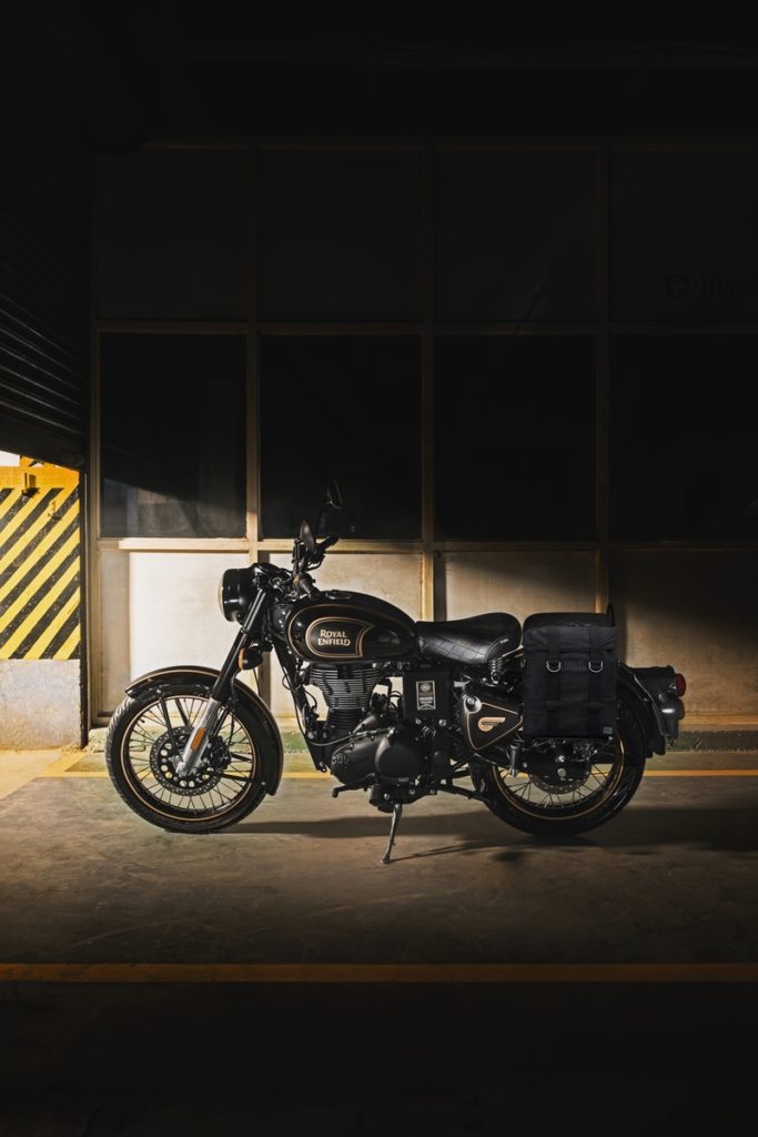 La limited edition vanta uno schema di verniciatura bicolore con parafanghi e serbatoio neri con finitura lucida e opaca (per la prima volta in 119 anni di storia del brand), e le linee d’oro dipinte a mano come da tradizione Royal Enfield. A completare l’equipaggiamento, ci sarà inoltre una gamma di esclusivi accessori originali: borse da viaggio in tela con staffe, coppia di specchietti touring, sella e sellino per il passeggero comfort e tappo olio motore black.