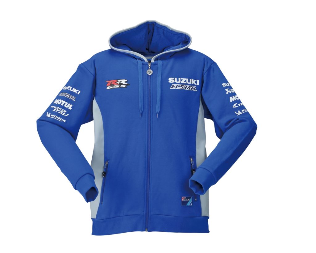 La linea di abbigliamento Suzuki MotoGP è pronta per lasciarci senza parole! I capi della collezione saranno oggetti unici con caratteristiche molto diverse tra loro sia per materiali che per taglio. Per l’autunno e l’inverno spiccano un soft shell e un pile, entrambi impreziositi dai loghi ufficiali del team e degli sponsor ricamati, gli stessi presenti anche sulle felpe, realizzate in versione con e senza cappuccio. I loghi sono invece stampati sulle t-shirt e sulle polo, le prime ordinabili con due grafiche differenti e le seconde in due diversi tessuti. Alle donne saranno dedicati capi come polo, canotta e felpa, studiati appositamente per risaltare la loro figura.