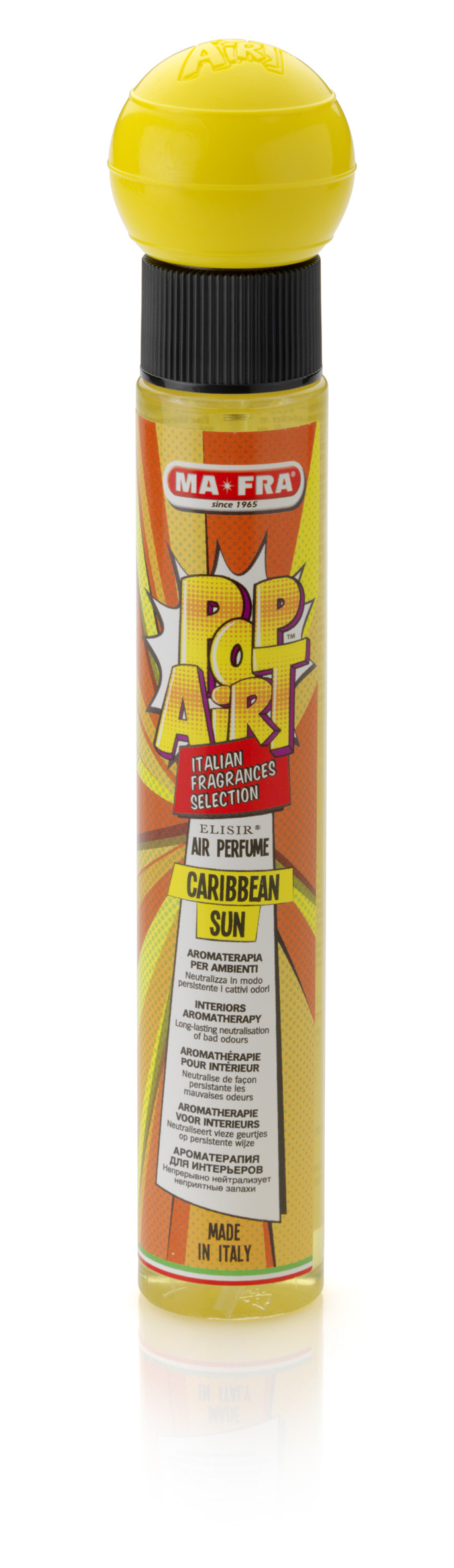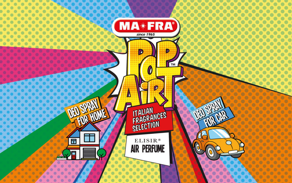 Mafra presenta POP AiRT, la nuova linea di profumi per auto. Ispirati ai colori e allo stile della Pop Art, i nuovi profumi spray di MAFRA si caratterizzano per essenze molto particolari, pensate per neutralizzare i cattivi odori dando un tocco originale a qualsiasi ambiente.