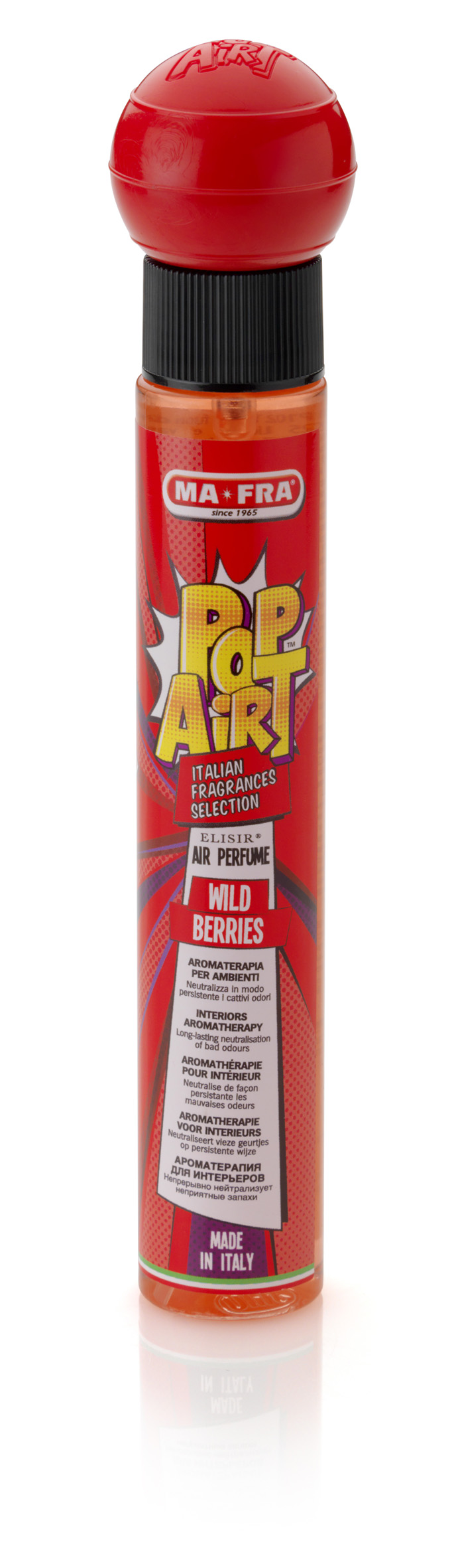 Con la sua nuova linea di profumi spray POP AiRT, Mafra rivoluziona il mondo dei profumatori, utilizzabili non solo in auto ma anche in casa e nei luoghi di lavoro. Il prodotto può essere nebulizzato nell’aria o spruzzato sui tessuti, per ottenere una piacevole fragranza che dura a lungo e dona un tocco personale all’ambiente. I profumi POP AiRT possono essere facilmente riposti nel porta oggetti dell’auto, pronti per essere utilizzati ogni volta che si vuole rinnovare l’aria, eliminando i cattivi odori quali fumo, smog e quelli degli animali.