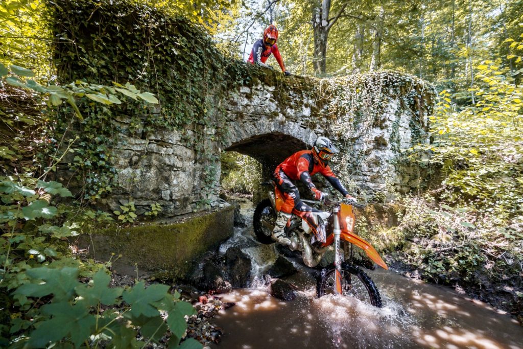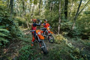 Nei corsi enduro l’allievo potrà partecipare con la propria enduro monocilindrica, o richiedere di guidare un modello della gamma KTM EXC.