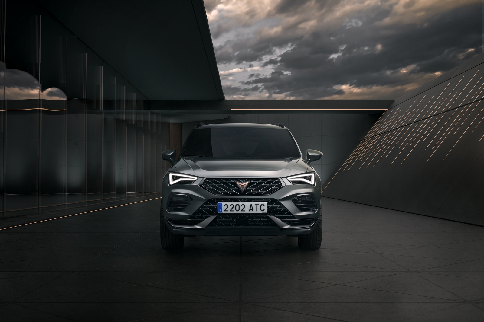 Il frontale è caratterizzato da un paraurti dal design nuovo e i fari full LED. La parte superiore della calandra a nido d’ape presenta il logo CUPRA al centro e una cornice con finitura cromata scura, mentre la parte inferiore invece un diffusore in alluminio scuro. La griglia anteriore con fendinebbia sui due lati si abbina alla finitura definendo il frontale del SUV ad alte prestazioni.