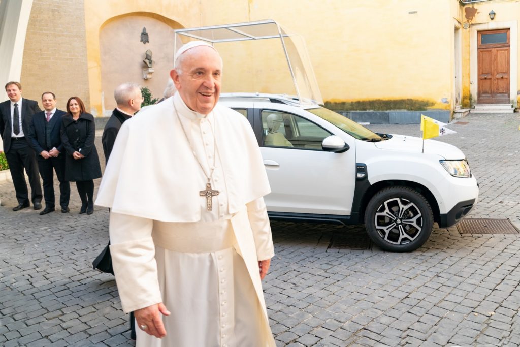 Il Gruppo Renault ha donato a Sua Santità Papa Francesco, una nuova papamobile, una Dacia Duster 4×4 appositamente studiato per le esigenze di mobilità del Pontefice. Il veicolo è stato consegnato al Santo Padre oggi da Christophe Dridi, MD Groupe Renault in Romania e CEO Automobile Dacia SA e Xavier Martinet, Direttore Generale del Gruppo Renault Italia, nel corso di una visita presso la residenza del Papa all’interno dello Stato Vaticano.