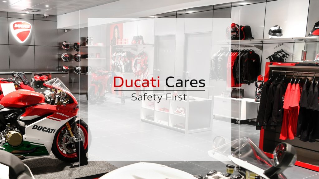 Per questo è stato sviluppato il “Ducati Cares“, un programma condiviso con tutta la rete Ducati che descrive i comportamenti e linee guida da adottare affinché i Ducatisti possano sentirsi sereni nel tornare a visitare il proprio concessionario di fiducia.