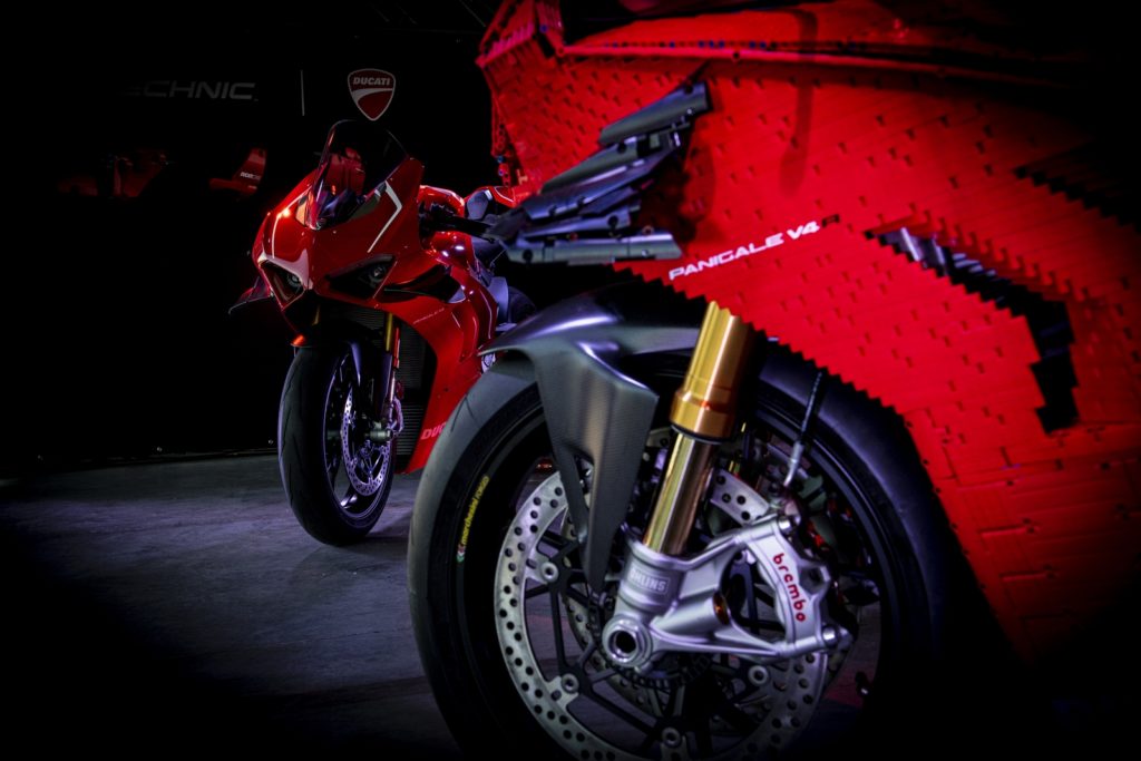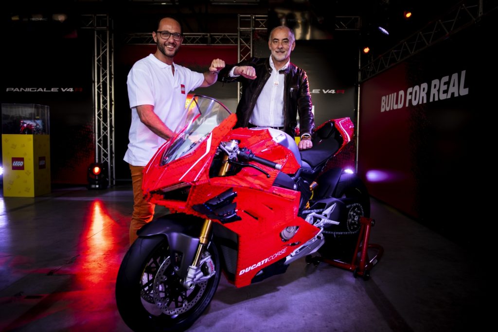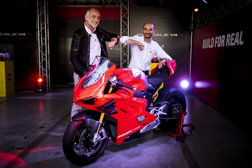 L’occasione è servita anche per celebrare l’arrivo sul mercato del tanto set 42107 LEGO Technic Ducati Panigale V4 creato da LEGO Group per gli appassionati del mattoncino e i fan delle due ruote. Il modello misura 32 cm di lunghezza, 16 cm di altezza e 8 cm di larghezza ed è il primo modello di moto nella storia di LEGO Technic a includere un cambio per simulare le diverse velocità e tecniche di guida. Altre caratteristiche sorprendenti sono lo sterzo, le sospensioni che conferiscono un movimento realistico, oltre ai freni a disco anteriori e posteriori. Cavalletto, tubo di scarico, parabrezza e cruscotto aggiungono i piccoli dettagli che rendono questa moto così fedele alla versione reale. Non ultimo il colore rosso che fa accelerare il battito di qualsiasi Ducatista.