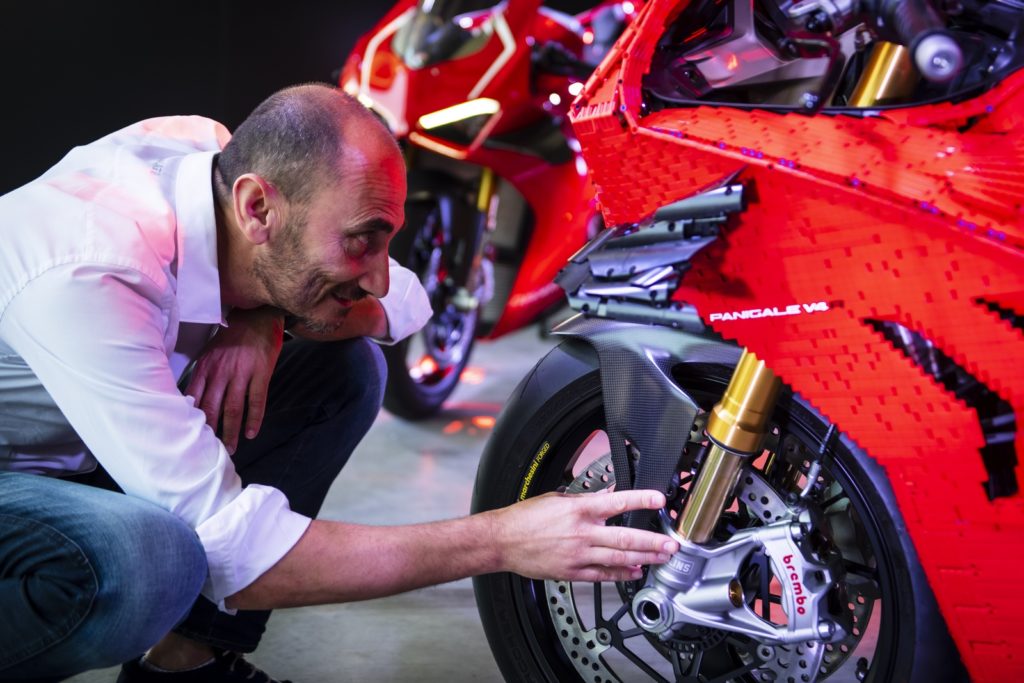 Riccardo Zangelmi, che da anni crea opere d’arte in mattoncini, e ha utilizzato per la prima volta LEGO Technic in questa occasione, si è dichiarato entusiasta del risultato: “Partecipare a questo progetto di LEGO Italia e Ducati è stata la sfida professionale più entusiasmante che abbia mai affrontato. Sono andato oltre ogni limite e ho vinto tagliando il traguardo in team. Mi sono approcciato al progetto come avrebbe fatto un pilota ufficiale della Casa di Borgo Panigale, spingendo al massimo in pista, cercando e superando nuovi limiti. Io per primo guardo oggi le due moto, fianco a fianco, e sono felice di aver colto il DNA che caratterizza sia LEGO Technic che Ducati, ricreando in mattoncini la moto simbolo dell’eccellenza italiana”.