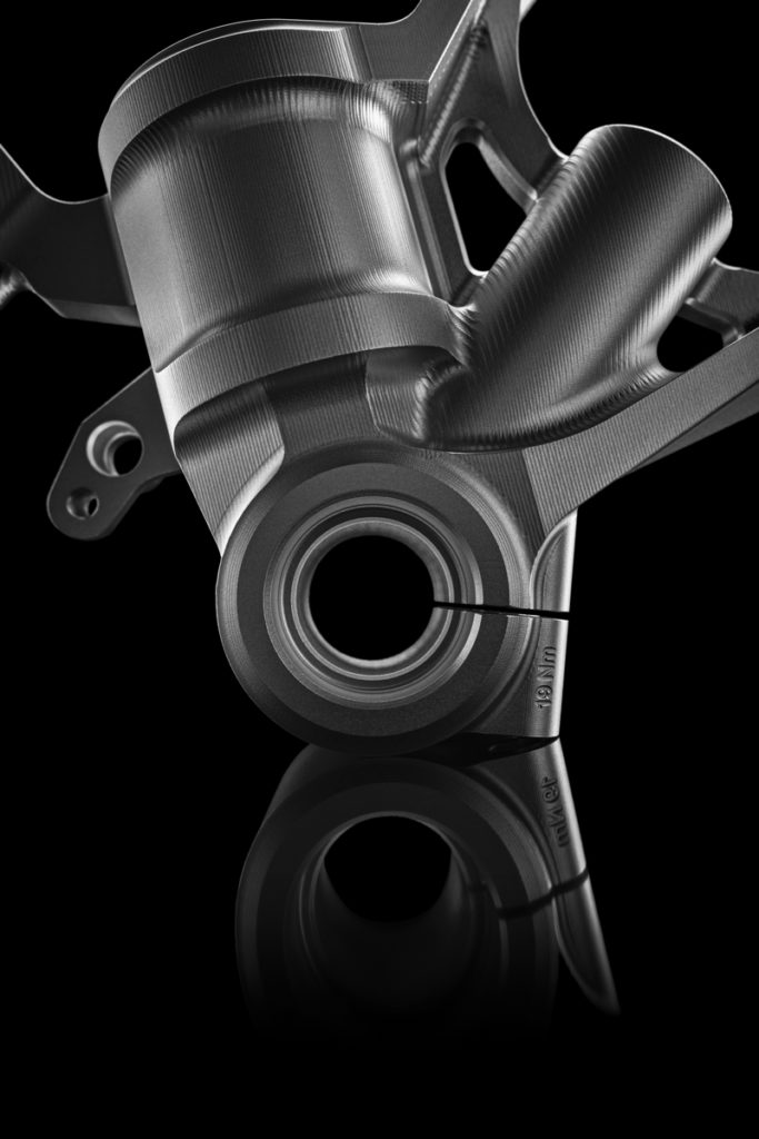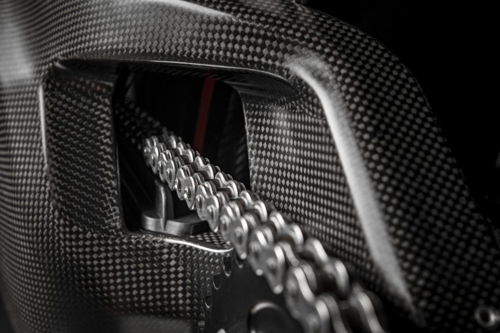 Per garantire i massimi standard qualitativi e di sicurezza questi componenti sono controllati al 100% tramite le più sofisticate tecniche mutuate dall’industria aerospaziale, quali termografia, controlli ad ultrasuoni, e tomografia. Le misure della ciclistica sono state modificate per ottimizzare l’utilizzo in pista allungando il forcellone.
