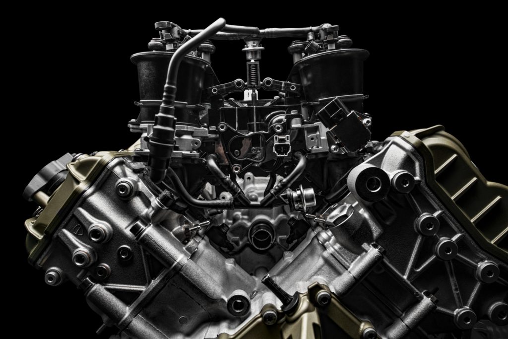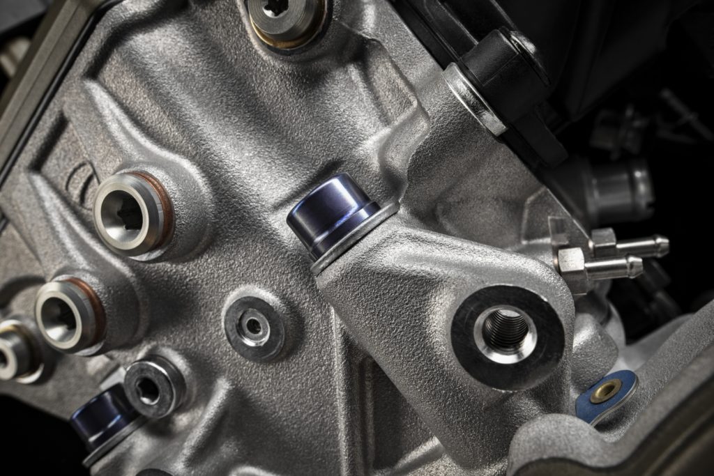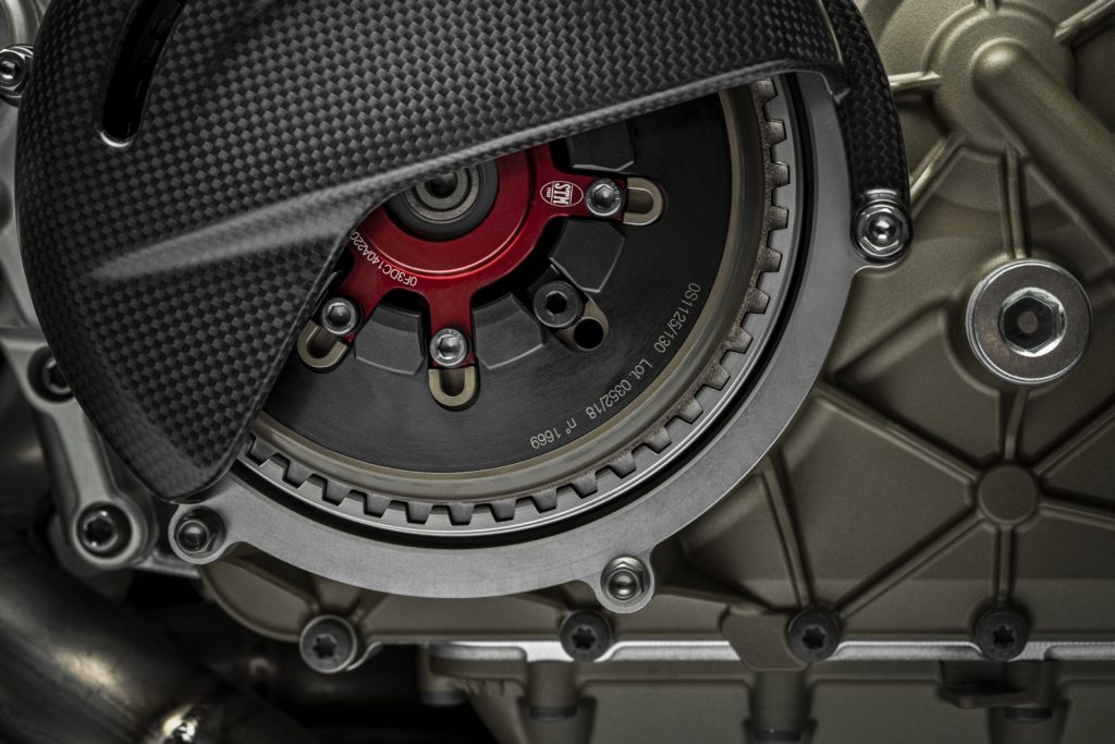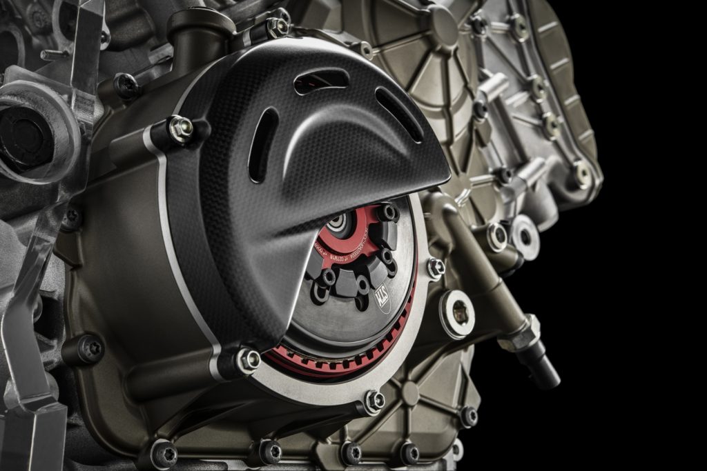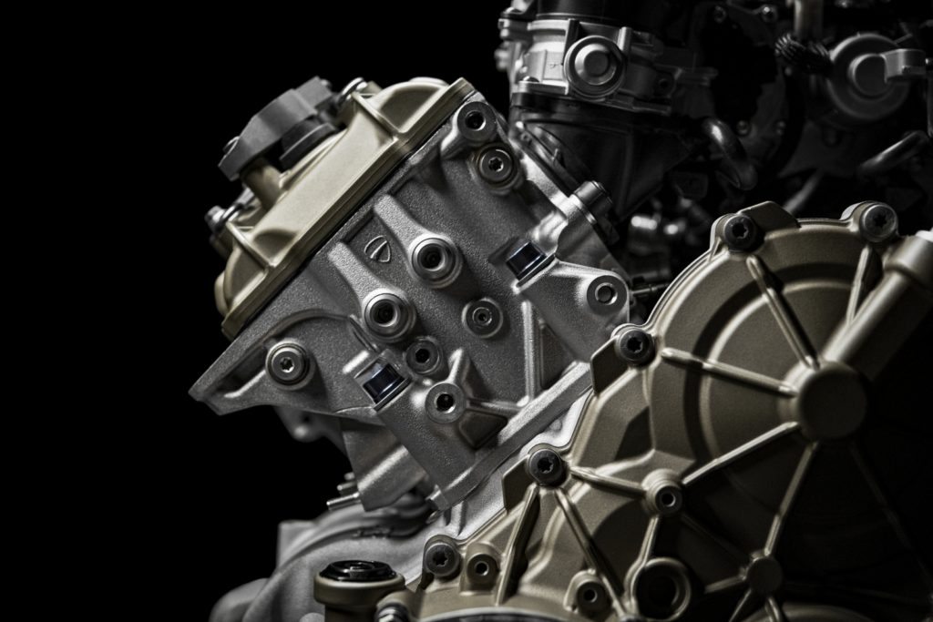 La connotazione racing del motore è enfatizzata dall’utilizzo della frizione a secco e dalla regolazione manuale del sistema desmodromico della distribuzione realizzata per ogni esemplare.