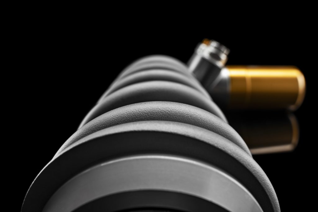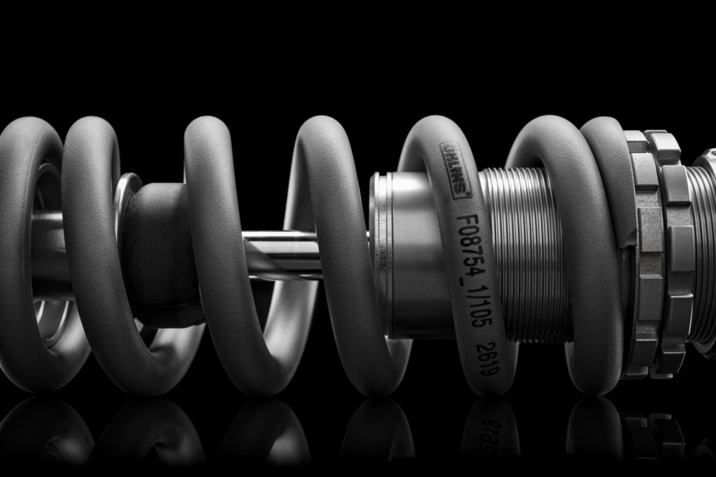 Fanno parte dell’equipaggiamento le sospensioni Öhlins alleggerite con forcella pressurizzata e piedino alleggerito ricavato dal pieno ed ammortizzatore con molla in titanio e valvole di derivazione GP, che migliorano l’assorbimento delle asperità stradali nella fase iniziale della compressione.