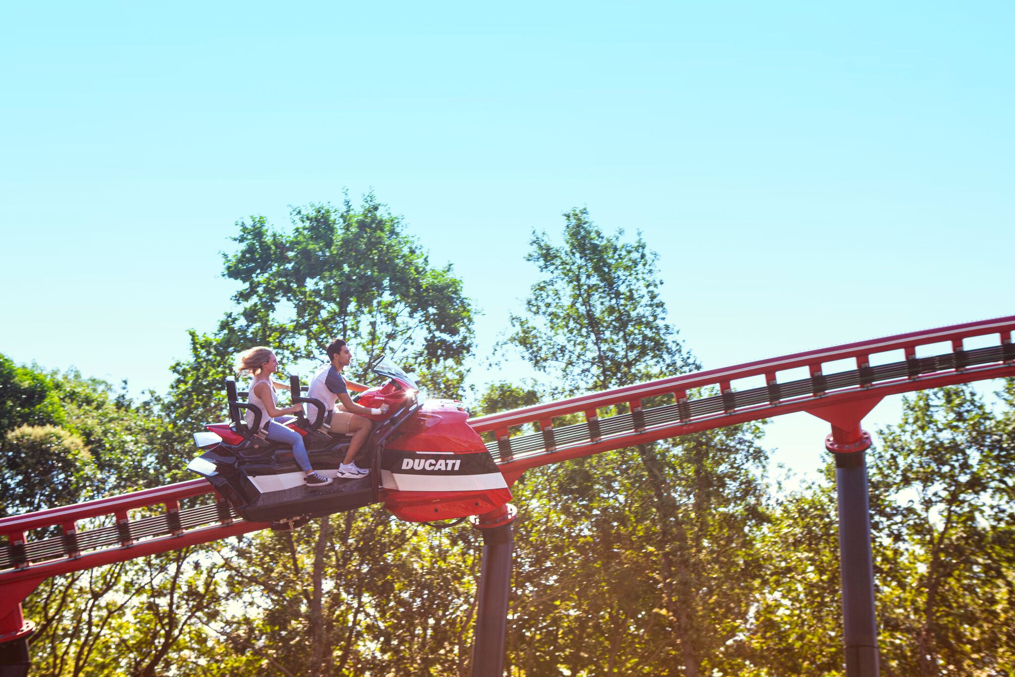 La prima area tematica al mondo ispirata a un brand motociclistico inserita in un parco divertimenti è nata per far vivere a tutta la famiglia l’adrenalina e il divertimento del mondo Ducati anche con: