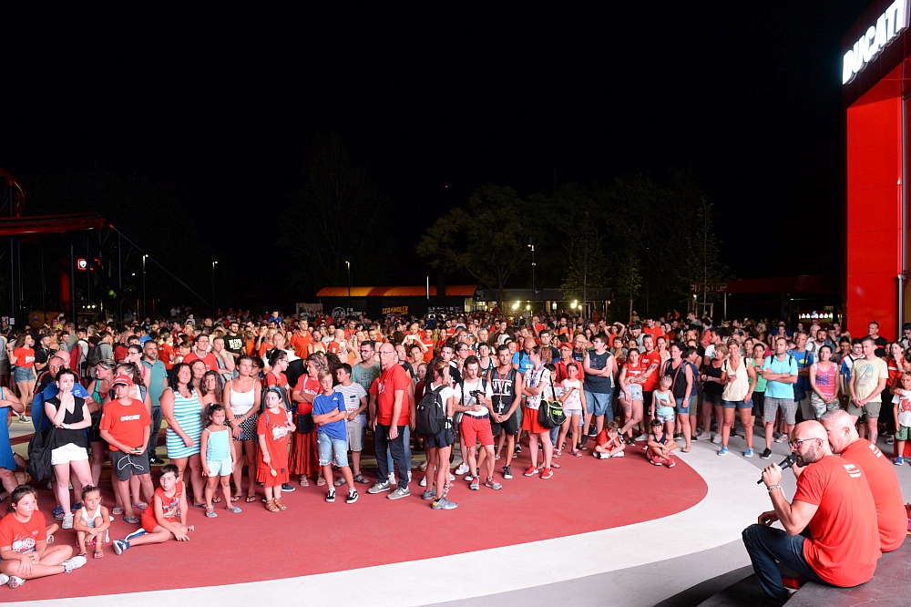 Con una secret opening organizzata alle 23, di solito orario di chiusura del Parco, il pilota Ducati Michele Pirro è stato il primo ieri sera a provare l’attesissima attrazione. Fino all’1 di notte tutti i presenti hanno potuto sfidarsi sul tracciato di Desmo Race. Tutta l’area Ducati World è stata inondata da visitatori vestiti di rosso. Ai primi mille Desmo Riders è stata regalata una maglietta speciale a tiratura limitata per celebrare la serata.