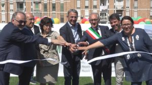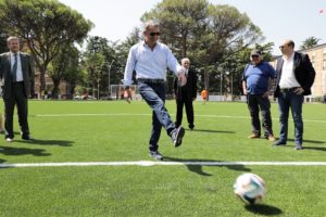 I bambini e i ragazzi del rione Vanvitelli potranno presto giocare e sognare in grande, perché nel loro quartiere oggi si inaugurano due nuovi campi da calcio e calcetto in erba sintetica di ultima generazione. Sono stati donati alla città grazie al “Protocollo contro l’abbandono dei pneumatici fori uso nella Terra dei fuochi”, siglato nel 2013 da Ministero dell’Ambiente, incaricato per il contrasto ai roghi in Campania, Prefetture e Comuni di Napoli e Caserta ed Ecopneus. A due anni dalla realizzazione dello stadio di Scampia (con campo realizzato utilizzando le stesse tecnologie), dunque, un ulteriore segno di speranza in un altro quartiere popolare della Regione. Nella giornata inaugurale, più di 100 i ragazzi impegnati in attività sportive e danze coreografiche.