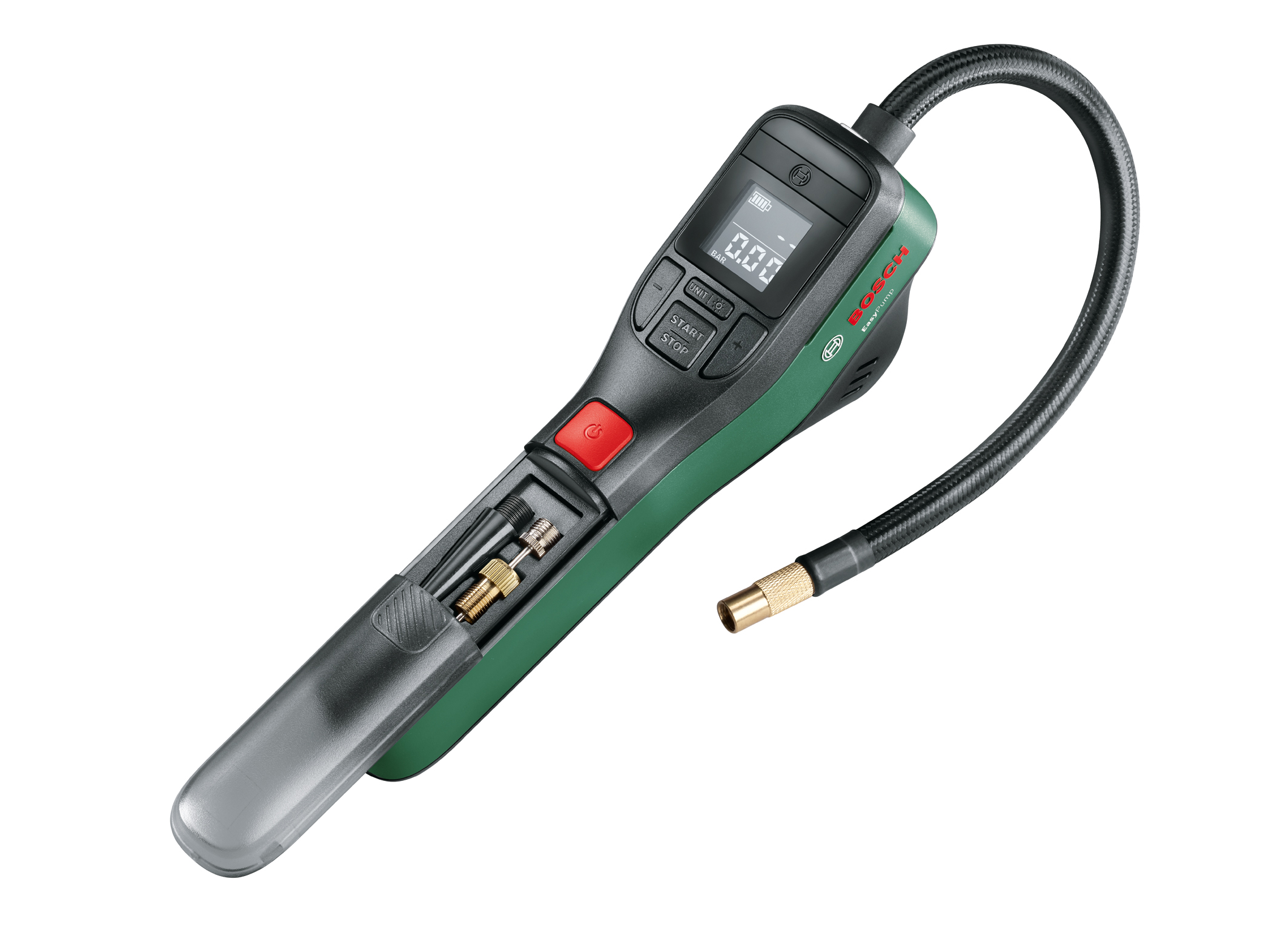 Hai una gomma a terra e sei troppo lontano dalla stazione di servizio? Bosch EasyPump è il nuovo mini compressore portatile compatto a batteria, dal peso di soli 430 grammi, ideale per le situazioni di emergenza, ma anche per lo sport e il tempo libero.