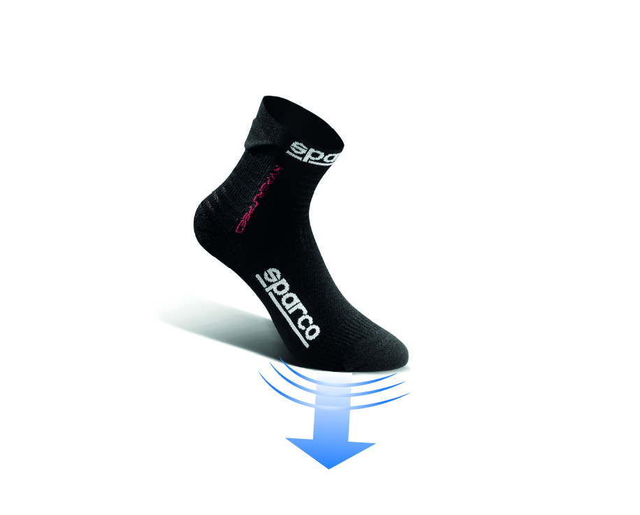 Struttura con filato in silicone serve a massimizzare la presa tra piede e calza o tra soletta e calza, presentano un grip differenziato in pianta tra piede sinistro e destro.