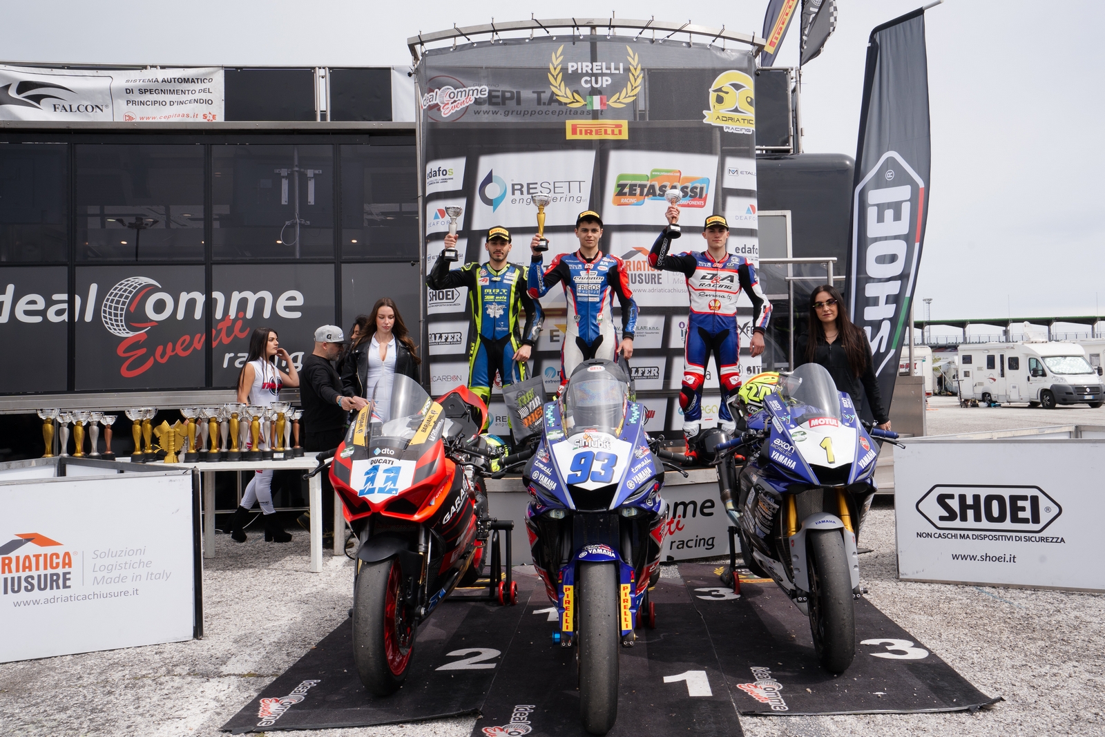 Nella gara due della 1000 si riconferma sul gradino più alto del podio uno strepitoso Luca Salvadori, che ci ha tenuti con il fiato sospeso in una lotta fino all’ultimo secondo insieme a Jarno Ioverno, che si era aggiudicato il primo posto in qualifica partendo in P1 con un tempo pazzesco di 1’36.9.
