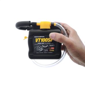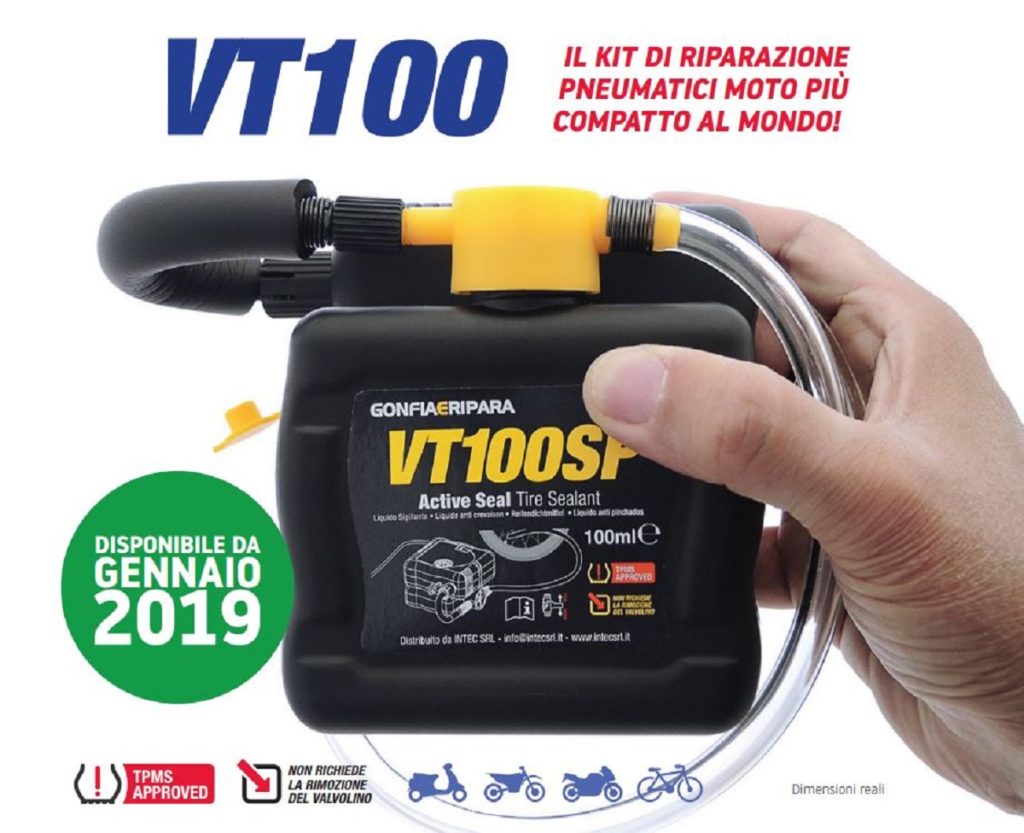 Sviluppato con la tecnologia Active Seal, lo speciale liquido sigillante di Gonfia e Ripara VT100 è in grado di riparare fori causati da oggetti fino a 6mm e, grazie alla sua formulazione particolarmente fluida, è compatibile con i sensori di pressione dei sistemi TPMS che iniziano a trovare applicazione anche sulle due ruote. È inoltre estremamente affidabile, ma non solo: è sicuro al 100% sia per l’utilizzatore, sia per l’ambiente e può essere rimosso con l’uso di semplice acqua.