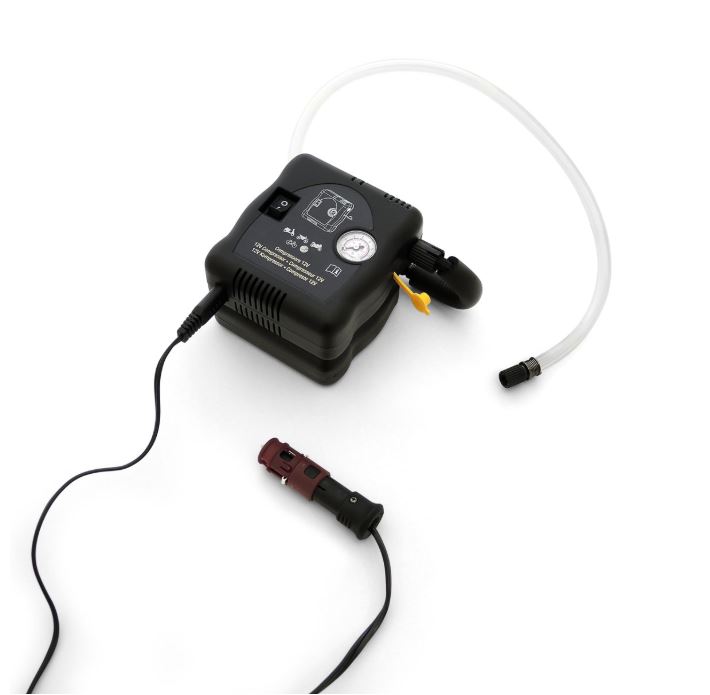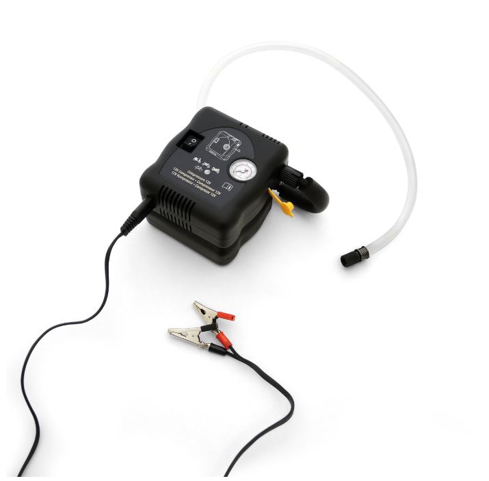Il kit di riparazione Gonfia&Ripara VT100 di Intec è stato pensato appositamente per le moto: le sue dimensioni ridotte di appena 110x95x70 mm e il peso contenuto di soli 650 g consentono di riporlo nel sottosella e di tenerlo sempre a portata di mano, per qualsiasi inconveniente possa verificarsi. Il kit è composto da un compressore 12 V ad alte prestazioni (potenza 8 A / 96 W), che assicura il funzionamento continuo per 15 minuti alla pressione nominale di 2,5 bar, un manometro analogico, set di cavi, pinze, occhielli, presa accendisigari, set di adattatori e un flacone da 100 ml di liquido sigillante.