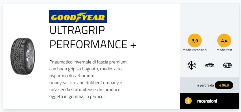 La gamma UltraGrip Performance offre una frenata e un’aderenza migliorate agli automobilisti alla ricerca di eccellenti prestazioni durante la stagione invernale. Questa gamma è stata progettata per contribuire a incrementare le performance delle vetture ad alte prestazioni su asciutto, su bagnato e in condizioni di ghiaccio o neve, grazie allo sviluppo apposito di tecnologie Goodyear.