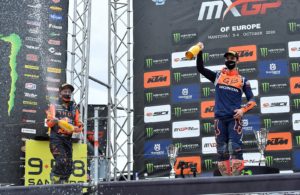 Nella MX2 Jago Geerts e Tom Vialle hanno chiuso la gara con il medesimo punteggio ma ad aggiudicarsi l’assoluta è stato il belga in virtù della vittoria in gara due. Vialle, secondo, ha mantenuto la Tabella Rossa. Terzo gradino del podio per il vincitore degli ultimi due Gran Premi Thomas Kjer Olsen che ha preceduto Ben Watson.