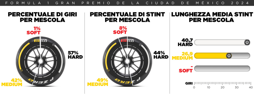 Come ad Austin, anche in Messico si assisterà a un salto di mescola. La Hard sarà la C2, mentre Medium e Soft restano le C4 e C5. Una scelta che renderà la C2 molto conservativa, ma utile per strategie a una sola sosta. Le squadre dovranno decidere se puntare sulla performance delle mescole più morbide – con il rischio di degrado – oppure su uno stint lungo e regolare con la C2.