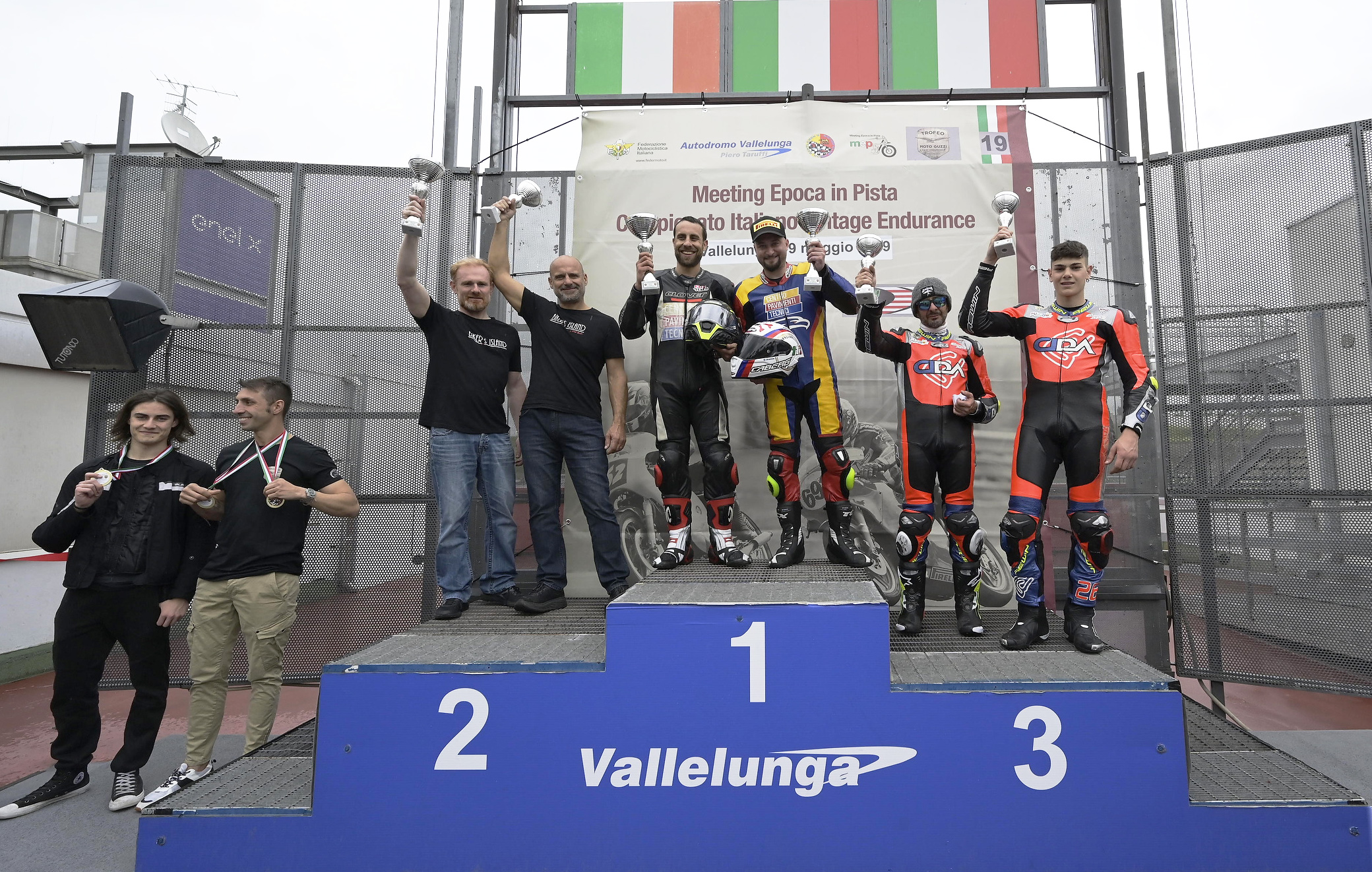 Ai piedi del podio il team The Clan, composto dalla coppia di piloti votata online dalla community ufficiale Moto Guzzi: Niccolò Rosso e Alessandro Moro si sono prodotti in una fantastica rimonta dalla sedicesima posizione occupata al primo giro fino alla quarta. A loro è quindi andato il premio speciale per la rimonta più bella, oltre al premio per il giro più veloce in corsa, siglato da Niccolò Rosso in 2’00”645, alla media di oltre 122 km/h: un rilievo cronometrico che è un’ulteriore dimostrazione delle grandi prestazioni di cui è capace la “piccola” settemmezzo di Mandello dotata del Kit racing GCorse.